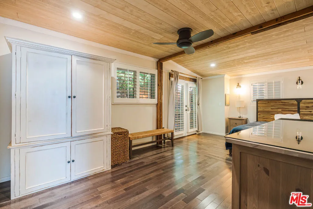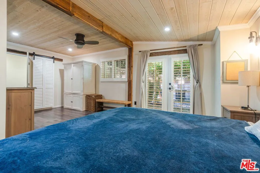 Located in the Del Rey neighborhood, this furnished 3-bedroom, 2.5-bath corner-lot residence offers generous indoor and outdoor living spaces with a flexible layout designed for everyday living and entertaining. The expansive grass front yard sets the tone as you arrive. Inside, the home opens to a spacious living area filled with natural light from several windows. French doors extend the living space to the front porch, creating a seamless indoor-outdoor connection. The living area flows into the updated kitchen, enhancing functionality and openness. The kitchen features a large center island, stainless steel appliances, and abundant cabinetry, complemented by oversized windows that brighten the space and frame a dedicated dining nook. The primary bedroom provides a comfortable retreat with an updated en-suite bathroom and French doors leading directly to the backyard. Two additional bedrooms offer ample closet space, including one with an en-suite full bathroom. The backyard is well-appointed for outdoor use and includes a stainless steel refrigerator, a second-story deck ideal for entertaining, and a spacious parking area with alley access. Conveniently located near Playa Vista, the 405 and 10 freeways, LAX, and a wide selection of shops and restaurants, this property offers both accessibility and versatility in a sought-after Westside location.