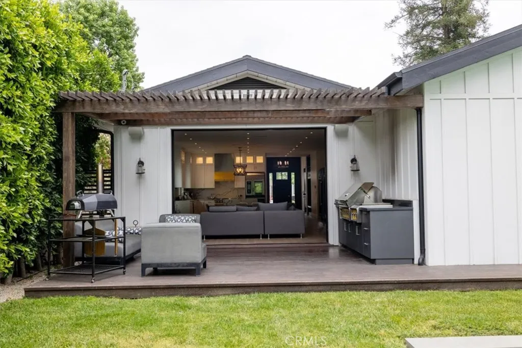 Welcome to the Otsego residence, a luxurious Chef’s Dream / Smart home situated in the heart of Sherman Oaks. This semi-furnished single-level home has four bedrooms and four bathrooms. Solar-powered home with battery backup, providing power during potential blackouts. The entryway sets the tone with its smart home integration, where a preinstalled iPad allows you to control lighting, music, and even ask Alexa questions. Proceeding into the kitchen, you’ll find a culinary enthusiast’s paradise. Professional-grade appliances abound, featuring the super rare Rational Combi Oven found in the finest restaurants. Hestan 36" 5-Burner, 36" True Refrigeration, 30" True Freezer, two 30" True Wine Refrigerators (300 bottle capacity), True Ice Maker, a Miele Coffee System, Thermomix, Robot Coupe mixer, Ankarsrum Orbital mixer. The kitchen island boasts a filtered and carbonated water dispenser, making it a true epicurean's delight. Chefs kitchen, you’ll find yourself in an oasis-like backyard designed for both relaxation and entertainment. The outdoor space includes a Hestan cooktop BBQ and grill, an Ooni pizza oven, and a beautifully furnished patio covered with a gazebo. The automated pool, complete with a waterfall and jacuzzi, invites you to unwind in style. The living room offers a stylish sectional couch, and an LG 65" TV, to lounge in comfort. The dining area features an Herman Miller expandable table that seats 6-14 guests comfortably, ideal for both intimate dinners and larger gatherings. The primary bedroom is a luxurious haven, featuring a Cal King bed with a Casper mattress and dual walk-in closets. Stunning en-suite bathroom. French doors leading to backyard/pool area. Second bedroom featuring a Cal King bed, a W Hotel mattress, and a Vizio 50" TV with Chromecast an en-suite bath. Spacious 3rd bedroom with library style shelving perfect as an office, & 4th bedroom with abundance of natural light. All bathrooms are meticulously designed with three en-suites, three walk-in showers, a freestanding tub, and a tub/shower combo, automated (touch-free) electronic toilets providing a spa-like experience in the comfort of your home. Further enhancing the home’s appeal are additional amenities, such as a Miele washer & dryer in the laundry room. The garage is outfitted with a VacMaster chamber vacuum sealer, a 50Amp 240V EV charger outside with Tesla adapter, and a 30" Bertazzoni fridge and freezer for extra storage.