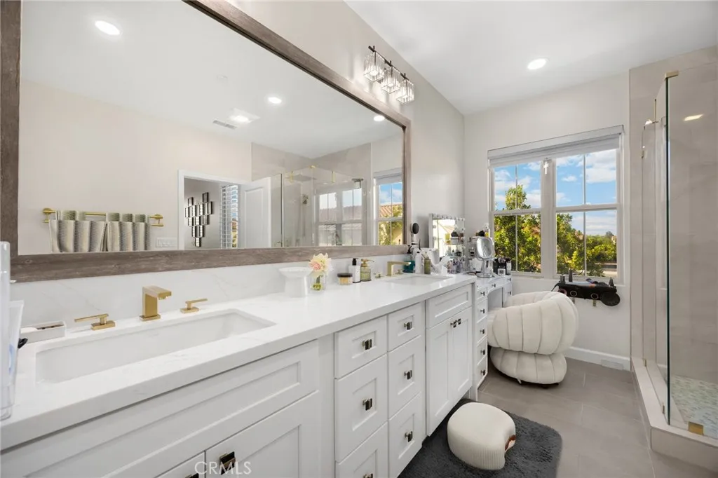 WOW! WOW! WOW! Welcome to the highly desirable Stone Gate Community where you are not just buying a home, you are buying a lifestyle. This stunning property features over $200,000 in upgrades and is truly a move in ready gem. From the moment you walk in, you will notice the brand new luxury flooring throughout the entire home, setting the tone for quality, comfort, and modern living. The custom built kitchen is designed to impress with new countertops, new cabinetry, new appliances, recessed lighting, a custom pantry, and an abundance of natural light that makes the space feel open and inviting. The entire home has also been upgraded with new windows, enhancing both efficiency and style.Upstairs, the primary suite lives like a true retreat, featuring new flooring and a fully remodeled bathroom with a large dual sink vanity, walk in shower, and a thoughtfully designed makeup area. A massive walk in closet with custom built in cabinetry delivers both function and elegance. This home is built for comfort and privacy with three full suites upstairs, meaning each bedroom has its own private bathroom. Downstairs, you will find a spacious guest bedroom with its own bathroom, perfect for visitors, in laws, or multi generational living.Step outside to a beautifully designed backyard featuring a custom covered patio, newer stone flooring, and mature fruit trees, creating the perfect setting for entertaining or relaxing. The best part is you have NO backyard neighbor, providing added privacy, peaceful views, and a rare setting that truly sets this home apart. Residents enjoy resort style amenities including pools, parks, tennis courts, walking trails, and clubhouses.Location is everything and this home delivers. You are conveniently located near the 5 Freeway, the 133 and 241 Toll Roads, John Wayne Airport, and the Irvine Spectrum. Stone Gate is known for newer homes, a safe neighborhood, strong resale value, and consistently high demand. Families actively seek the highly rated schools of Stonegate Elementary, Sierra Vista Middle School, and Northwood High School, helping homes in this community hold value and sell faster. This home truly has it all, upgrades, privacy, location, schools, and lifestyle.