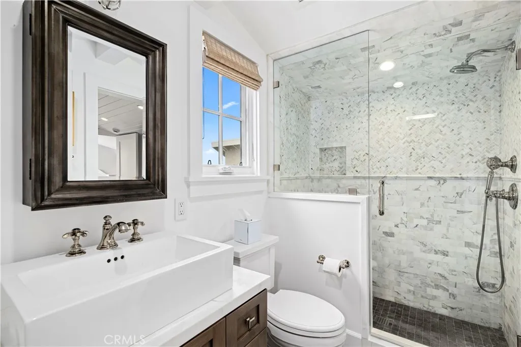 Fully furnished and truly turnkey, this exceptional Village residence is located in one of the area’s most coveted pockets, with an elevated, tranquil setting along the prized 700 block where ocean views sweep from the upper level. Every detail has been curated with intention, showcasing exquisite design and superior construction. Wide-plank distressed wood floors, elegant wainscoting, soaring two-story ceilings, designer hardware, statement lighting, and an advanced technology system combine with crisp white cabinetry, paneled ceilings, and expansive windows to create a bright, inviting ambiance ideal for sophisticated coastal living. The main level features a gourmet kitchen with marble countertops, designer appliances, and abundant custom cabinetry, flowing seamlessly into a generous living area where disappearing panel doors open to a covered loggia with a cozy fireplace and ample seating, perfect for year-round enjoyment. The primary suite offers soaring ceilings and a designer bath with a soaking tub, walk-in shower, dual-sink vanity, and custom walk-in closet, creating a private retreat of unparalleled comfort. Upstairs, a spacious secondary en-suite bedroom provides a private bath with views and direct access to an expansive rooftop deck, where sweeping ocean vistas stretch to Catalina Island and wrap around to the golf course. Live the Corona del Mar Lifestyle with proximity to famed beaches, blue-ribbon schools, fine dining and exquisite shopping.