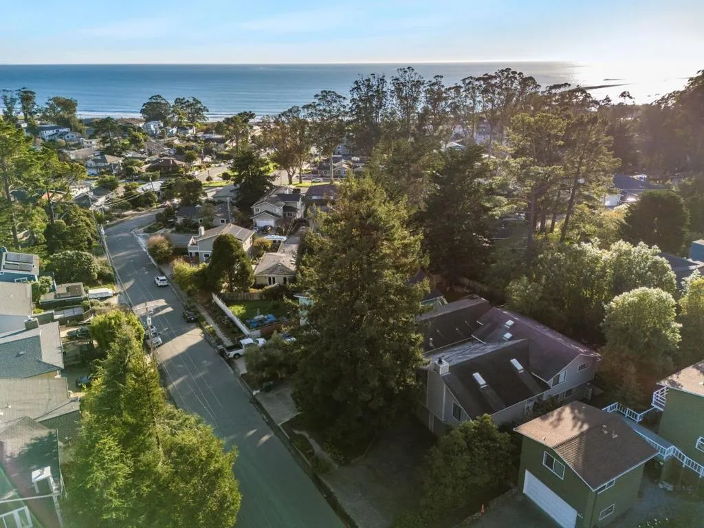Spacious home with excellent natural light and separate in-law unit in a fantastic coastal location. The large open concept great room has vaulted ceilings, a wood burning fireplace, skylights and and deck off the common area. A distant ocean view can be observed from the primary bedroom suite with walk-in closet, sizable bathroom, and balcony, overlooking the rear garden. Two adjacent bedrooms and a hall bathroom complete upper split level. On the lower level, an in-law unit with a bedroom, bathroom, living room, kitchen, dining space and private deck is accessible through it's own entrance via the side yard. There's also a laundry room and entrance to the 3 car garage on the lower level. 0.7+/- miles to Surfers Beach and hiking trails, less then 1+/- miles from shops and restaurants. There will be no open open houses; shown by appointment only.