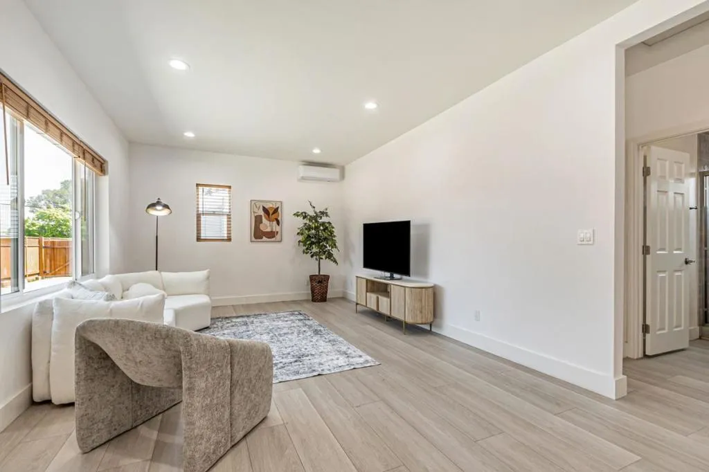 Charming renovated single family home with ADU in San Jose! The main residence was extensively remodeled and expanded in 2023, now offering a modern 3-bedroom, 2-bathroom layout with two independent entrances. Every detail has been refreshed, including a new kitchen, flooring, windows, plumbing, wiring and fresh interior paint. The home is also equipped with a mini-split system for year-round climate control. Adding significant value is the stunning, 1,000 SF ADU. This detached unit boasts high ceilings, 2 bedrooms, 2 bathrooms, a full kitchen, and a living room. It is further enhanced by its own dedicated solar panel to maximize energy efficiency. The renovations for the main house and the construction of the ADU were permitted. A long gated driveway easily accommodates four cars, plus a basement for additional storage needs. The prime location is just a 3-minute walk to Buena Vista Park and minutes from premier destinations like Santana Row and Westfield Valley Fair. Easy access to Highways 17, 280, and 880. Close to San Jose State University and tech giants like Apple, Nvidia, and AMD.