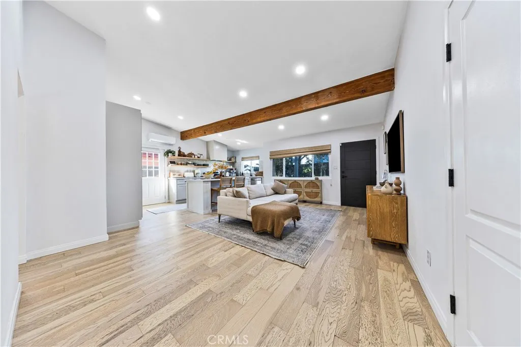 Inside, enjoy engineered hardwood flooring throughout, new interior doors, recessed lighting, and updated ceiling fans and light fixtures in the bedrooms, creating a warm and inviting atmosphere. Major system upgrades include upgraded electrical and plumbing, a newer water heater installed June 2025, and efficient mini-split A/C units conveniently controlled by remote or mobile app.