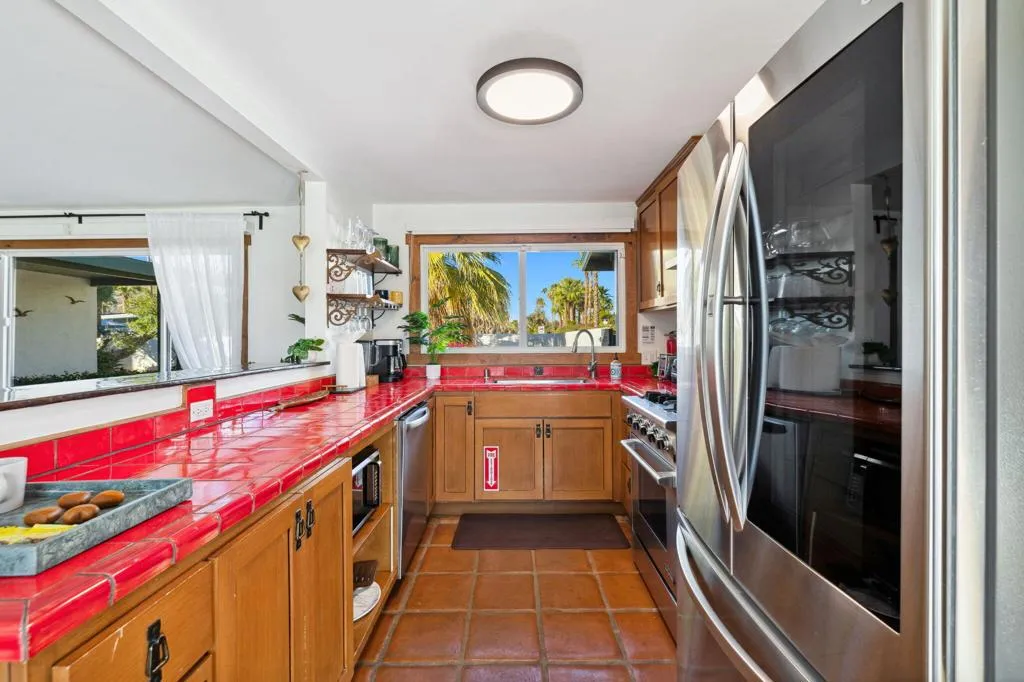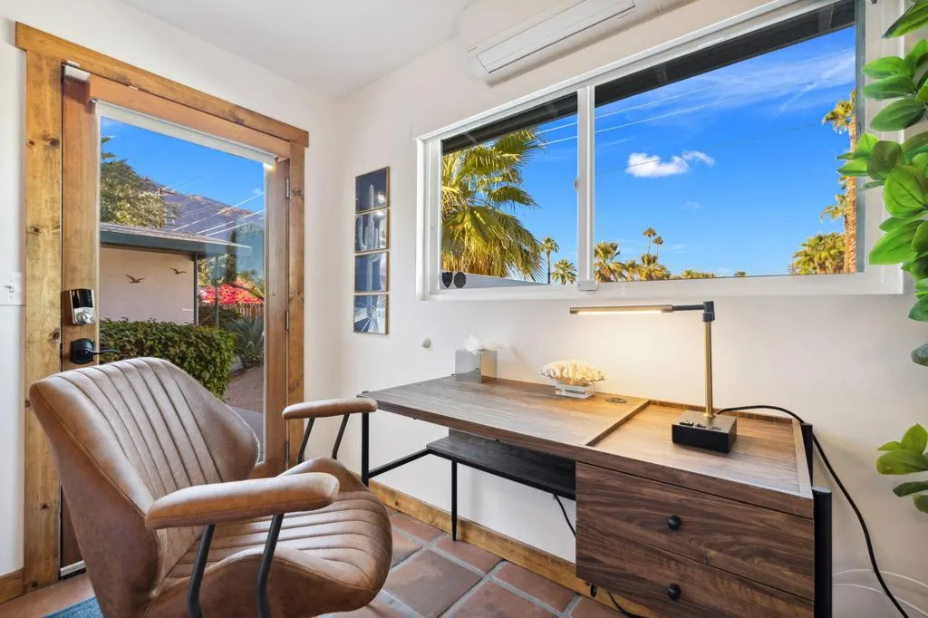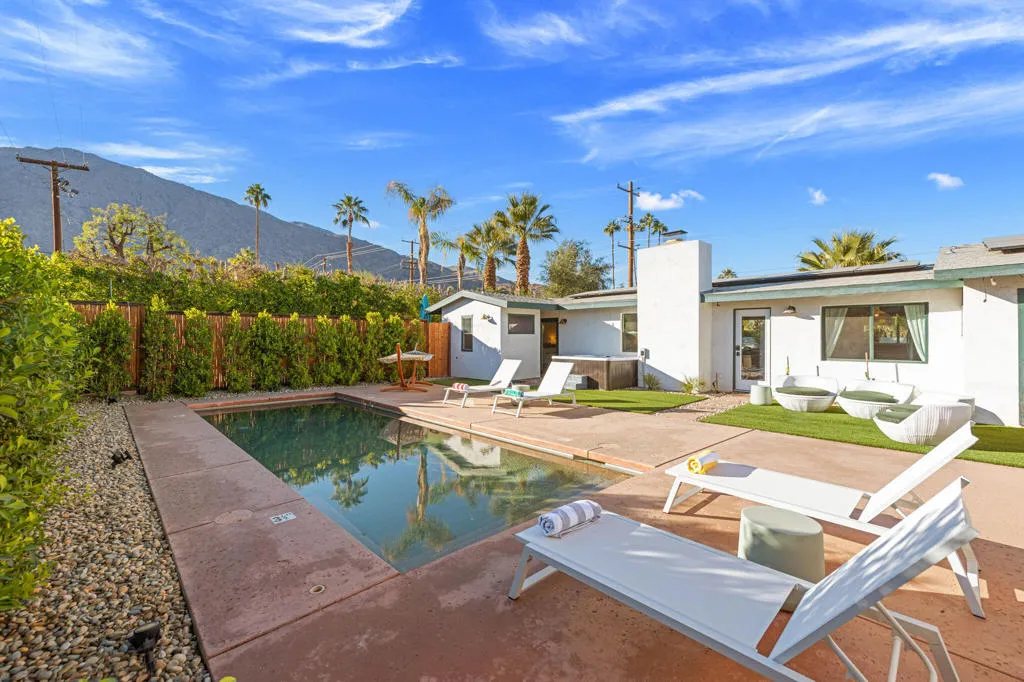 Rich in character and designed for effortless desert living, this Spanish ranch style home offers a rare blend of charm, comfort, and privacy in the heart of Palm Springs. Whether enjoyed part-time or full-time, it feels like home the moment you step inside.The backyard is truly special, sun drenched and private, with a sparkling pool, chic cabana for al fresco dining or sunset cocktails, and dramatic mountain views that define the Palm Springs lifestyle. It's your own personal resort, ideal for entertaining, relaxing, and soaking up the sun.Inside, warmth and character meet a relaxed high desert aesthetic. A cozy fireplace anchors the living room, while the kitchen is designed for easy connection and effortless entertaining. The primary suite is a true retreat, featuring beautiful wood closet doors and direct access to a jetted hot tub just outside. Two stylish guest bedrooms and a vibrant guest bath add comfort and personality.The lot offers exceptional versatility, with a welcoming front garden, expansive pool and entertaining area, a west-side yard perfect for installing a bocce ball or planting a citrus grove, and a large east-side bonus yard ideal for building a casita/ADU, a pickle ball court, or your own custom outdoor escape, you decide.Located in the highly desirable Tahquitz River Estates neighborhood, this home is just a short walk to Townie Bagels and downtown Palm Springs. As a bonus, it is eligible for a City of Palm Springs short-term rental permit, offering the opportunity to Airbnb and offset ownership costs. Private, character-filled, and rich with outdoor space, located out of the wind and within walking distance of down town Palm Springs, this is an increasingly rare find i.Schedule your private showing today and experience this desert oasis for yourself.