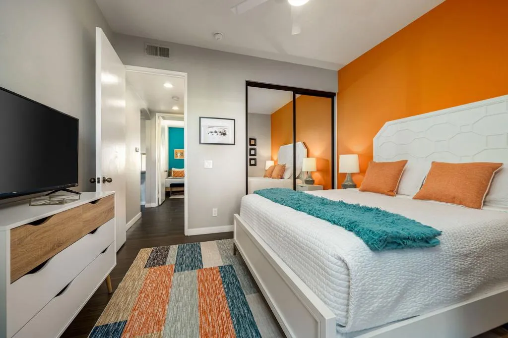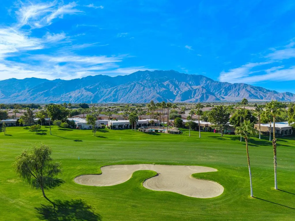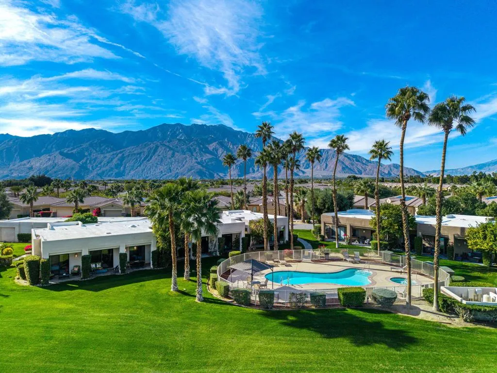 Welcome to Fiesta Siesta--a turnkey, fully furnished, beautifully renovated end-unit condo in the guard-gated Desert Princess Resort! Tucked into a quiet enclave, this home overlooks the golf course and is steps from a brand-new pool and spa. Offering 1,285 sq ft of single-level living, this retreat features mountain views from every window, 3 bedrooms, 2 bathrooms, a one-car garage plus tandem parking, and a courtyard with Weber grill and golf cart parking. Enter through the cheerful teal door into an open floor plan with 9-ft ceilings, abundant natural light, and tile flooring throughout. Guest rooms are separated from the primary suite for privacy. The living room opens to an expansive outdoor Zen space--ideal for sunsets, alfresco dining, and evenings by the firepit. The kitchen offers quartz countertops, abundant cabinetry, oversized peninsula, pantry, and Whirlpool appliances. Bedrooms are generously sized with large closets and dedicated workspace. Modern smart home features include oven, dishwasher, full-size laundry tower, Ring camera, Nest thermostat, digital door lock, MyQ garage opener, camera and keypad. Land lease extended to 2069. Short-term rentals allowed (3-night minimum). HOA includes cable and Wi-Fi. Minutes to downtown Palm Springs, shopping, casinos, biking trails, and easy highway access. 27 holes of PGA golf, bar & grill, spa, pickleball, tennis, fitness center, bocce, and EV charging. Immaculate and move-in ready--luxury desert living at its finest!