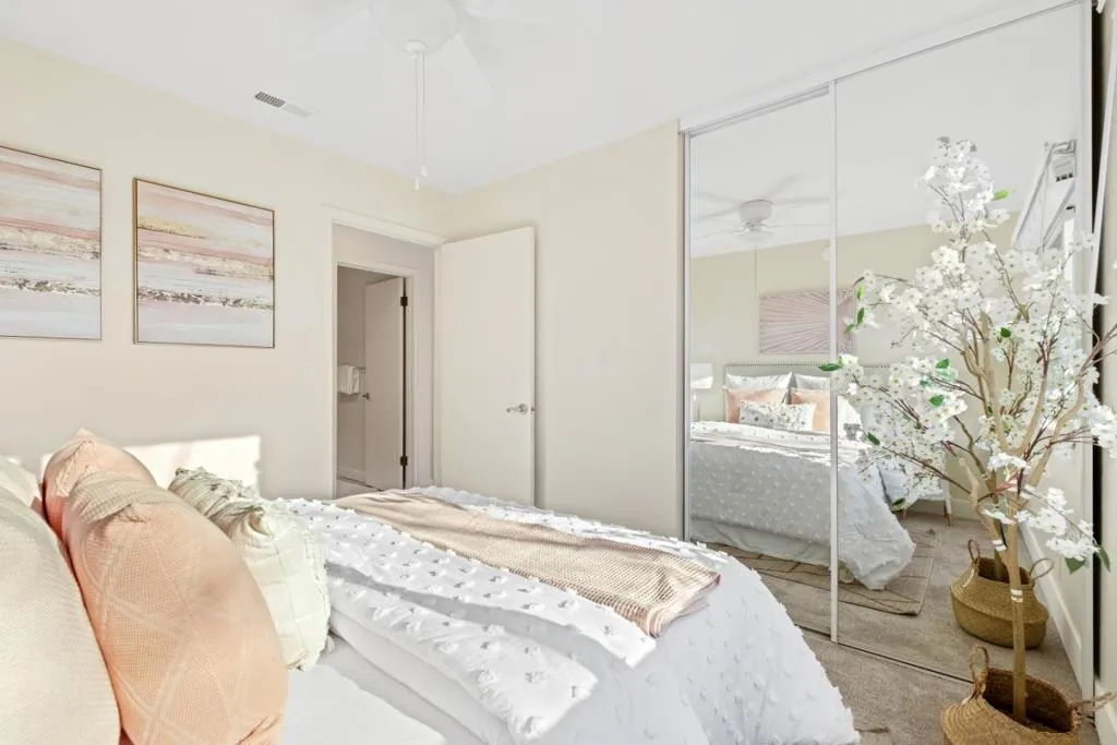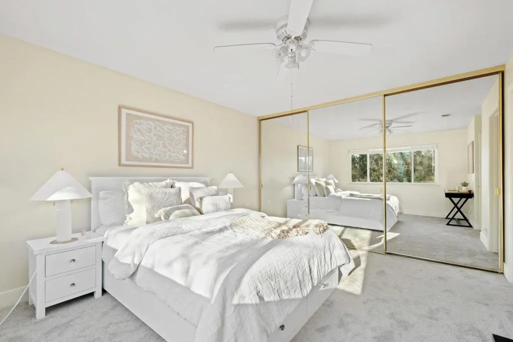 *Welcome to this newly updated corner unit, where modern comfort seamlessly blends with timeless style. Featuring high ceilings, expansive windows and glass doors, this bright and airy home offers a warm, inviting ambiance throughout. The spacious open-concept living and dining area flows seamlessly into a sleek kitchen, complete with stainless steel appliances, ample cabinetry, and a convenient breakfast bar, perfect for everyday living and entertaining. *Enjoy relaxing moments on the charming balcony, which overlooks a lush greenbelt and includes a bonus storage room. Enjoy the added convenience of newly installed flooring, central heating, in-unit laundry, and a detached garage #228. The generously sized master bedroom features a custom-shelved closet and an elegant ensuite bath with dual sinks. *Ideally located just a short walk from Townsend Park, this gem is surrounded by popular spots like Safeway, Sprouts, H-Mart, Ranch 99, and Costco. Enjoy seamless access to major freeways (101, 680, 880, 237), BART , and leading tech giants such as Nvidia, Google, Apple, and Supermicro. An extraordinary blend of comfort, style, and convenience.