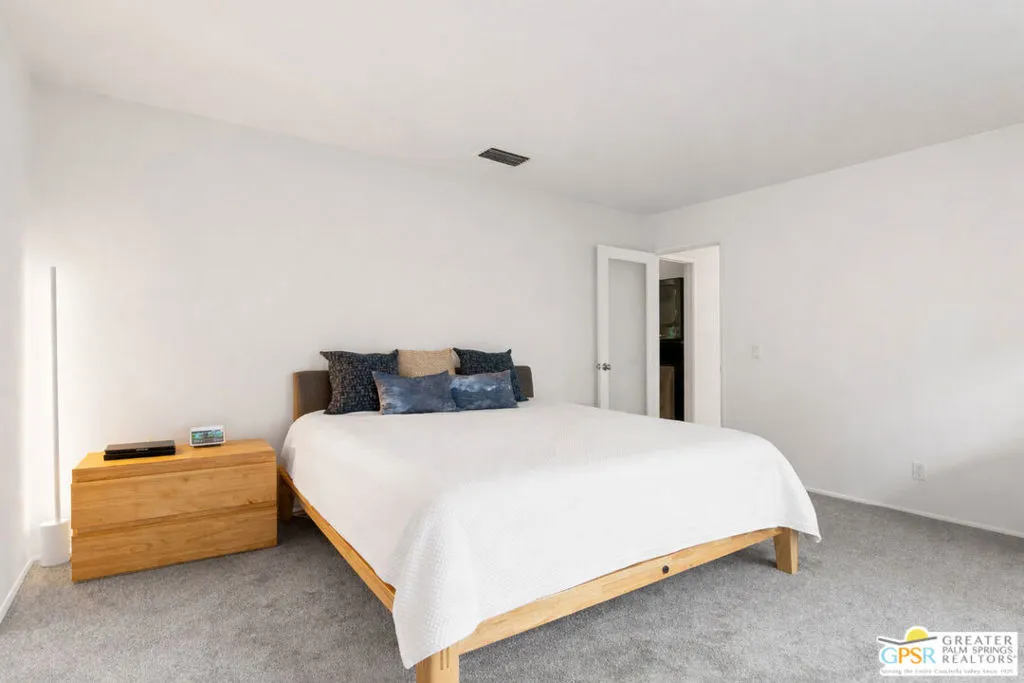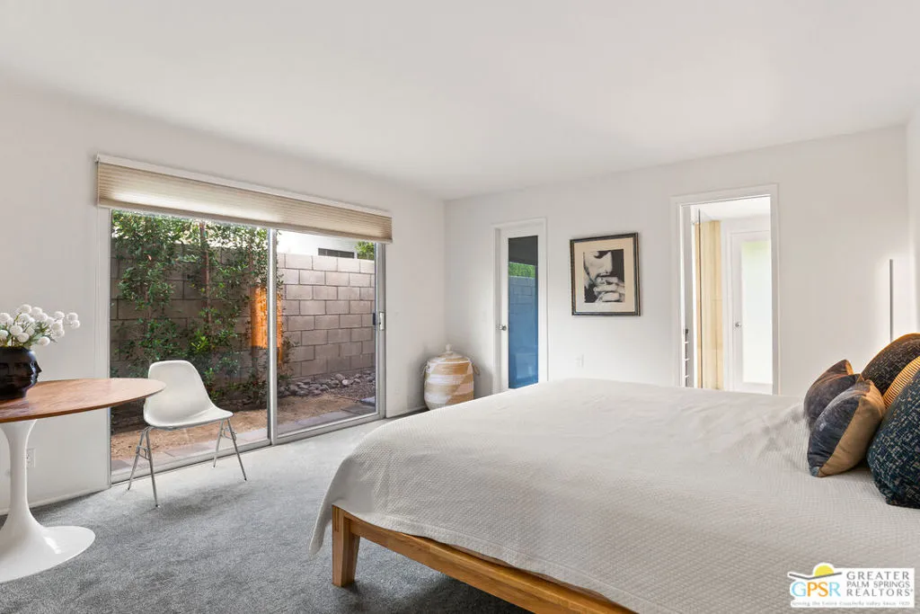 Tucked behind private gates in the sought-after Movie Colony East neighborhood of Palm Springs, this mid-century ranch offers the perfect blend of style, comfort, and indoor/outdoor living. A mature ficus hedge surrounds the property, creating complete privacy in the serene backyard oasis featuring a sparkling pool and spa, mountain views, and a covered lounge area designed for relaxation and entertaining. Inside, the home showcases vaulted ceilings and an open floor plan filled with abundant natural light. The newly updated kitchen is a standout, featuring custom cabinetry, stylish countertops, and modern appliances ideal for both everyday living and hosting guests. Updated lighting enhances the home's clean, contemporary feel. Freshly painted inside and out, the residence also offers new carpet in the bedrooms and beautiful travertine flooring throughout the main living areas. Every detail has been thoughtfully updated, making this a truly move-in-ready opportunity in one of Palm Springs' most desirable neighborhoods.