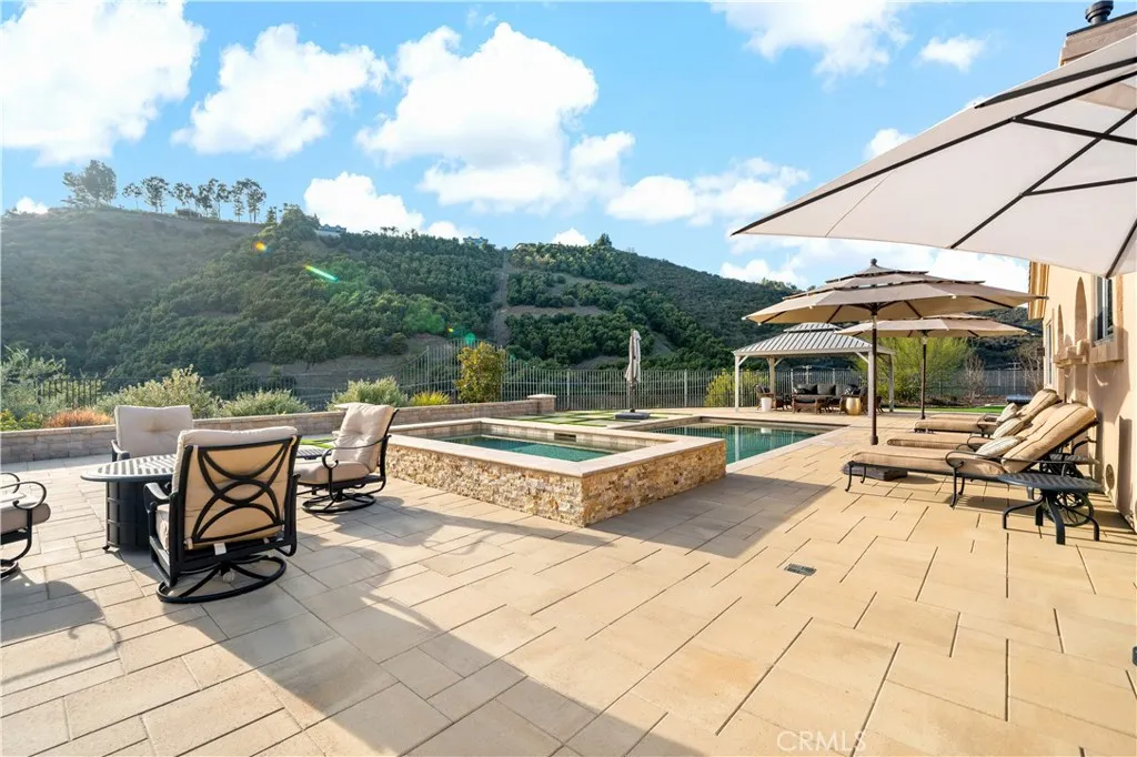 As the seller prepares for an upcoming corporate relocation, the home has been newly repositioned, creating an exceptional buying opportunity in one of De Luz’s most desirable settings. Located approximately 20 miles from the Pacific Ocean, this exquisite property seamlessly blends sophistication with the tranquility of its surroundings, creating a captivating, welcoming & serene retreat. Enter through private custom gates to cool breezes, on this 3.3 acre estate. Landscaped grounds lead to an architectural masterpiece that effortlessly marries contemporary design with timeless charm. Upon entering this Mediterranean Tuscan the foyer unveils the impeccable craftsmanship & meticulous attention to detail. The open floor plan bathes the interiors in natural light, accentuated by the high ceilings & Versailles laid travertine floors, complemented by wood floors in the bedrooms. The gourmet kitchen is a culinary haven where functionality meets aesthetics. Custom cabinetry & high-end Decor appliances, including a built-in refrigerator, microwave, warming drawer, dishwasher, undercounter ice maker & a 48-inch built-in 7-burner cooktop with dual ovens. The residence boasts spacious living areas, including a cozy family room with a fireplace for unwinding after exploring nearby wine country. A private office space caters to modern lifestyle demands & can easily convert into a 4th bedroom. The master suite is a haven of luxury, featuring a dual-sided fireplace, a private sitting area & a spa-like bathroom that beckons for relaxation. There are 2 more bedrooms each w/ensuite baths. Stepping outside through accordion glass doors, merging indoors with the outdoor seating, fireplace, outdoor kitchen & bathroom, creating the perfect setting for al fresco entertaining. The saltwater pebble pool, equipped with a retractable cover & a spa accommodating 20 people promise ultimate relaxation. Beyond the pool, a bocce ball court with its crushed oyster shell playing field, providing a unique & engaging recreational space. The property features a small orchard with a variety of fruit trees, while the expansive yard boasts drought-tolerant landscaping with native plants & trees. Multiple areas could serve as a location for an ADU or additional agriculture. This property invites you to experience the epitome of gracious living in the heart of Temecula's scenic beauty. Welcome home to a lifestyle of sophistication & serenity.