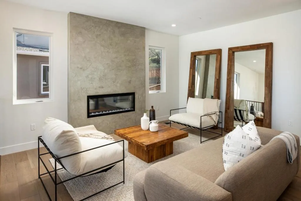 Nestled at the base of the Santa Teresa Foothills, this 4 bedroom plus office, 3.5 bath newly constructed home is one of four custom homes in the established cul-de-sac neighborhood of Glendora Court. This 3,097 S.F. home with warm tones and modern architecture mixes with an abundance of natural light and relaxing ambience and situated on a 13,983 S.F. parcel.The first floor boasts a beautiful bedroom suite with French Door access to the huge backyard, powder room, living room with fireplace, dining room and a large great room with an additional fireplace. There is a convenient den/office or flex space on the first floor. The family style kitchen, with Italian cabinetry has a sleek quartz waterfall style island. The upstairs has a sumptuous master retreat with a fireplace and huge walk in closet. There are 3 other bedrooms upstairs, There are European Oak wide plank hardwood floors throughout the home! The terraced backyard is a substantial blank canvas of space and privacy and room for a possible ADU. The finished, 3-car garage is EV ready and the home is equipped with owned Solar with battery back up. The home is also pre- wired for security. Glendora Court is minutes away from commuter routes Highways 85 and 87, Almaden Expressway, golf, shopping, restaurants, and trails,