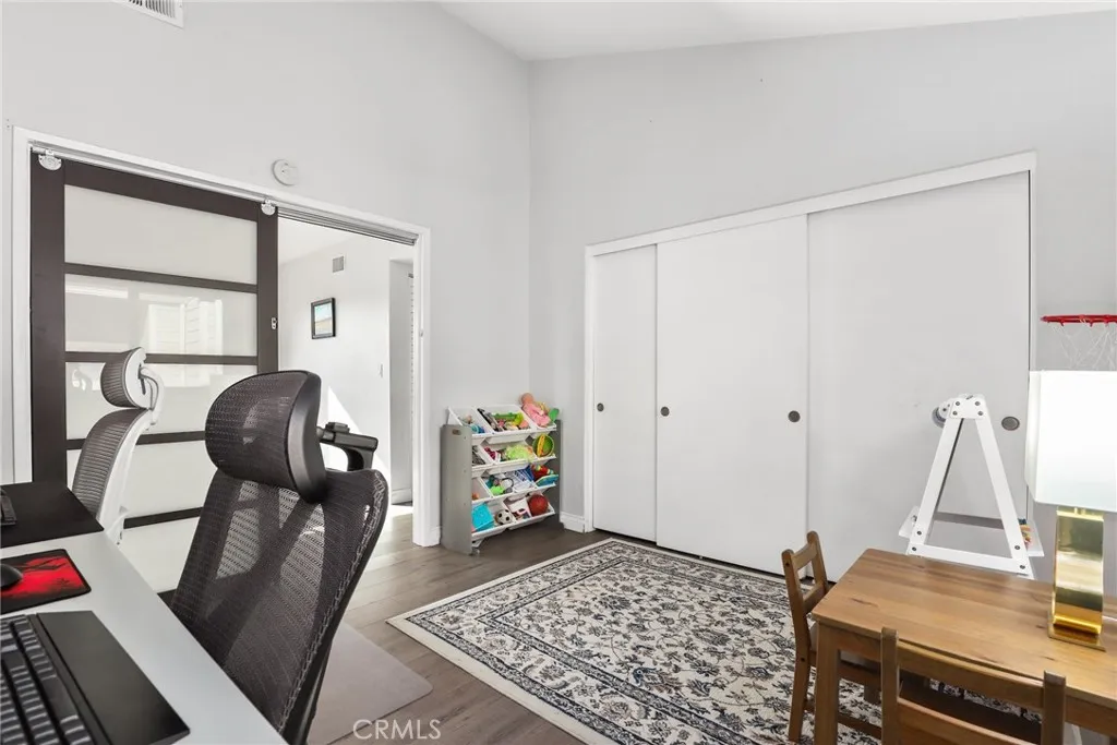 Beautifully renovated top-floor end-unit townhome in highly desirable Cypress with top-rated schools. This bright 2-bedroom, 1 bath (with additional vanity in the primary suite) home features vaulted ceilings, floor-to-ceiling windows, laminate flooring, updated lighting, and a cozy living room fireplace. The updated kitchen offers quartz countertops, recessed lighting, and bright windows in the dining area. Sliding glass doors open to a private deck, and the home includes in-unit laundry and 2 car private garage. The primary bedroom features a walk-in closet. Resort-style community with serene ponds and streams, garden paths, pool, spa, BBQ area, and guest parking. HOA includes water and trash. Conveniently located near Arnold Cypress Park with easy access to the 91, 5, and 605 freeways.