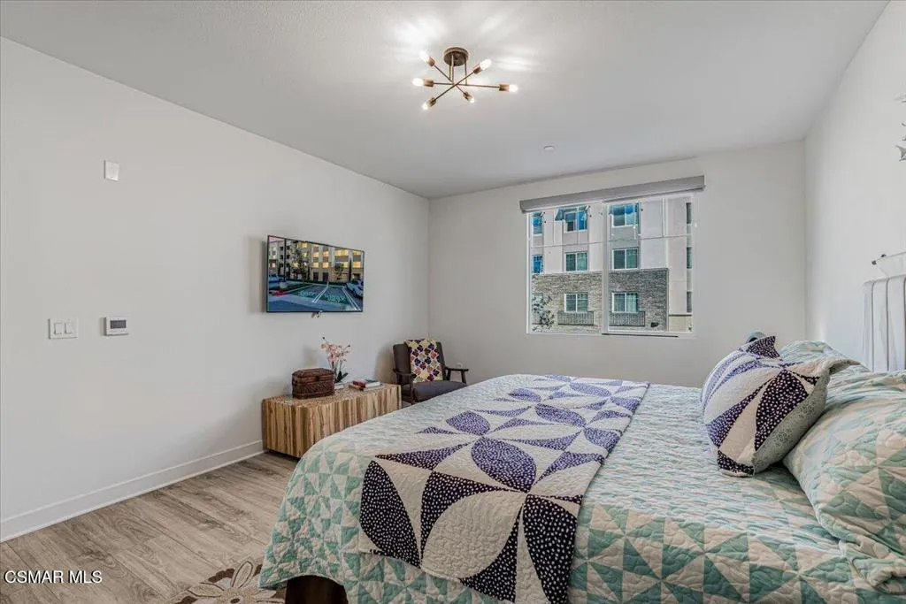 Located in the stunning, newer developed Wagon Wheel community, this penthouse-like residence offers elevated living with exceptional security and style. Enjoy peace of mind with three layers of secure access, including a gated parking garage, private lobby, and controlled elevator access to your floor.Inside, the home welcomes you with abundant natural light, an airy open floor plan with tall ceilings, and refined designer finishes throughout. Upgrades include sandy-toned wood-like laminate flooring, quartz countertops, white cabinetry, custom window blinds, and a spacious exterior California room balcony. The expansive primary suite features a spa-inspired en-suite bath with separate tub and shower, a private water closet, and a generous walk-in closet.Additional highlights include OWNED SOLAR, owned whole-house water softener, a tankless water heater, high-efficiency ENERGY STAR Qualified A/C Equipment, a private in-floor storage room, in-floor trash and recycling chute, two assigned interior parking spaces, several EV charging hookup spots and ample guest parking.Ideally located just minutes from The Collection, The Esplanade, beaches, fine dining, entertainment, and exceptional schools, Wagon Wheel also offers on-site shops, a brewery, coffee bar, dog park, playground -- making this a rare blend of convenience, comfort, and elevated living.
