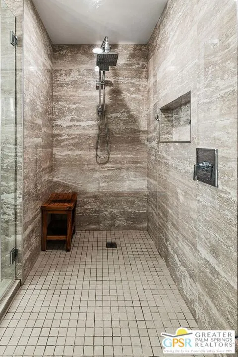 Beautifully renovated and impeccably styled, this residence at 910 Island Drive, Unit 410 offers quintessential Desert Island living with panoramic lake, golf course, and mountain views. Located within the prestigious 24-hour guard-gated Desert Island community in Rancho Mirage, this upper-level home blends modern design with resort-style comfort. A dramatic double-door entry opens to a light-filled interior featuring warm wood-tone flooring, recessed lighting, and a spacious open layout ideal for entertaining. The living room is anchored by a sleek stacked-stone fireplace and flows seamlessly into the dining area with a custom built-in bar perfect for hosting guests. Floor-to-ceiling glass frames tranquil water views and opens to a generous covered balcony, ideal for outdoor dining, relaxing, and enjoying desert sunsets over the lake and fairway. The remodeled kitchen showcases contemporary flat-panel cabinetry, quartz countertops, stainless steel appliances, designer tile backsplash, and a large peninsula with seating. The expansive primary suite offers stunning views, a sitting area, ceiling fan, and multiple closets, including a walk-in. The spa-like primary bath features a dual-sink vanity, modern lighting, a soaking tub, and a large walk-in shower with designer tile and rain shower head. A well-appointed guest bedroom and updated guest bath provide comfort and privacy for visitors. Additional features include a formal foyer, in-unit laundry room, tasteful finishes throughout, and a thoughtful floor plan that feels both open and refined. Desert Island amenities include lakes, lush landscaping, multiple pools and spas, fitness center, tennis and pickleball courts, clubhouse, and on-site management just minutes from shopping, dining, and Eisenhower Medical Center.