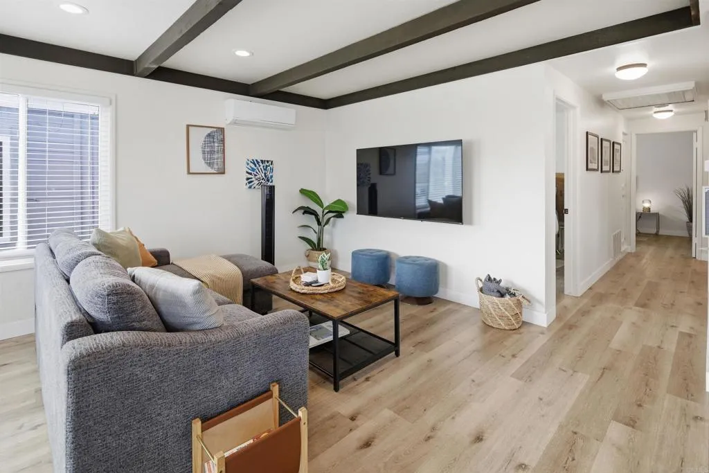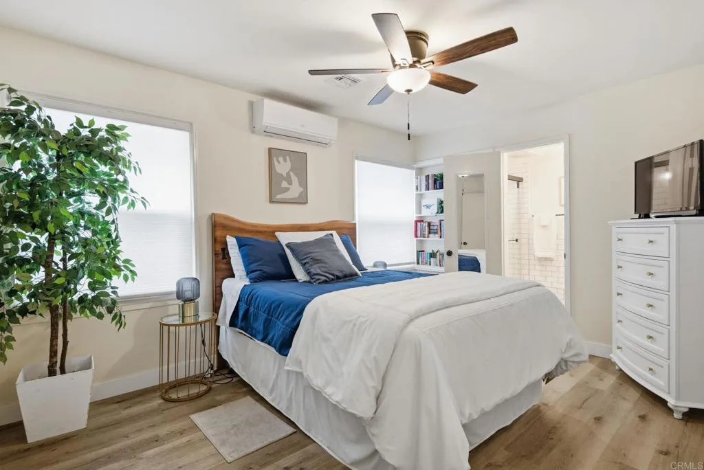 Just steps from the sand, this fully renovated duplex is ideally positioned in the highly sought-after South Mission Beach neighborhood. Designed for elevated coastal living, the property features modern finishes, functional layouts, and an unbeatable beachside setting near the boardwalk and surf. The upper unit offers approximately 1,600 sq ft with 3 bedrooms, 2 full bathrooms, and a private balcony with ocean views. The lower unit spans approximately 800 sq ft and includes 2 bedrooms, 2 full bathrooms, and a private patio ideal for outdoor enjoyment. The property includes three covered parking spaces, a rare feature in the area. Recent upgrades include dual-pane windows, new roofing, updated HVAC with mini-split systems, luxury waterproof flooring, quartz countertops, stainless-steel appliances, remodeled bathrooms, in-unit laundry, and fresh interior and exterior paint. Located close to the sand, dining, shopping, and coastal amenities, this duplex offers flexibility for a variety of uses and an exceptional opportunity to own in one of San Diego’s most desirable beach communities.