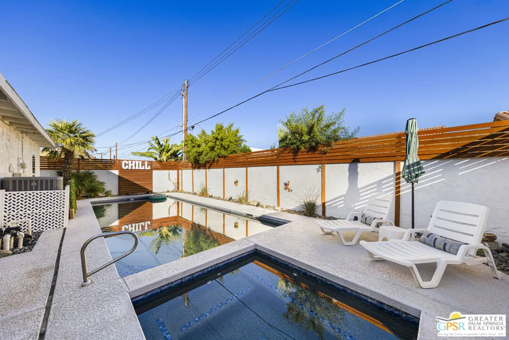 Enjoy relaxed desert living in this beautifully updated 3-bedroom, 2-bath pool and spa home located on a quiet street in the highly sought-after La Quinta Cove, surrounded by breathtaking Santa Rosa Mountain views. With thoughtful upgrades, inviting outdoor spaces, and a layout designed for indoor-outdoor living, this home offers the perfect desert retreat.Inside, the open and functional floor plan is filled with natural light and enhanced by new windows throughout, allowing the mountain views and sunshine to shine in. Fresh interior paint and additional updates add a clean, move-in-ready feel. The living area flows seamlessly into the dining space and renovated kitchen, while the dining area opens directly to the backyard, making entertaining and everyday living effortless. The primary suite offers a comfortable private retreat with an updated ensuite bath including a new vanity and tile, while two additional bright guest bedrooms provide flexibility for guests, family, or a home office. One guest bedroom features direct access to the backyard, creating a wonderful connection to the outdoor space. Step outside to your private backyard oasis featuring a sparkling pool and spa at the same level, ideal for relaxing or hosting gatherings year-round. A covered patio offers shaded outdoor living and dining, perfect for enjoying desert mornings and evenings. Mature landscaping and mountain views create a serene and private setting. At the front of the home, a walled-in front patio provides an additional outdoor retreat with mountain views, ideal for morning coffee or sunset relaxation. Additional highlights include a two-car garage, new windows, ample storage, additional thoughtful updates and a prime location just minutes from Old Town La Quinta, scenic hiking and biking trails, shopping, dining, and world-class golf and tennis. Ideal as a full-time residence, vacation getaway, or investment opportunity, don't miss this wonderful home.