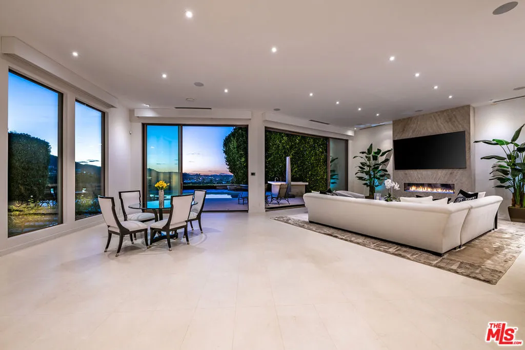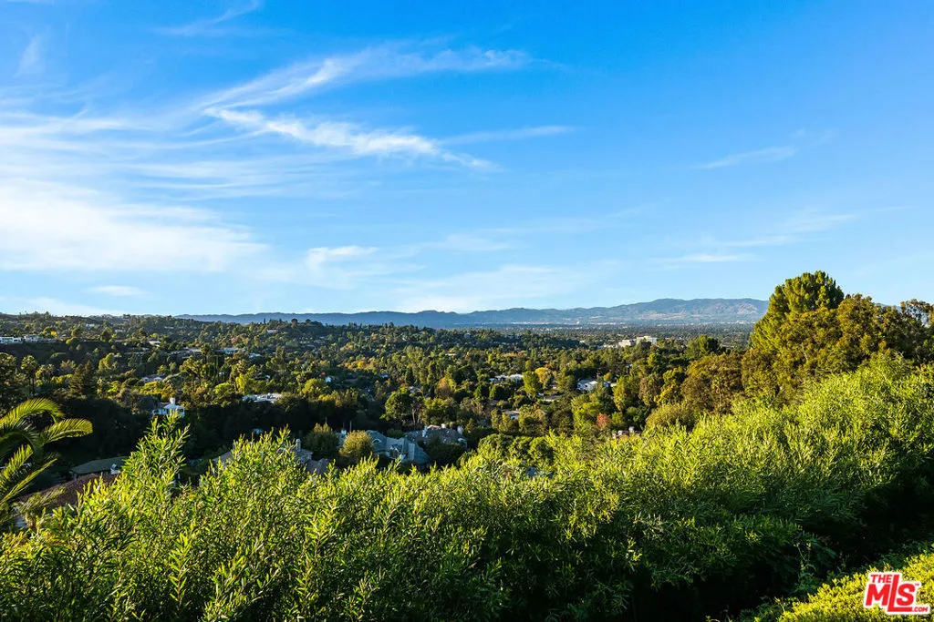Nestled in the prestigious Royal Oaks enclave of Encino, this single-story architectural retreat commands breathtaking, panoramic views. Thoughtfully rebuilt and fully modernized, the residence is designed for seamless indoor-outdoor living and refined California luxury. A dramatic entry welcomes you with soaring ceilings and a vaulted skylight, flooding the interiors with natural light. Walls of glass open to a private, resort-style backyard featuring a sleek pool and spa, expansive entertaining patios, and lush mature hedging that provides exceptional privacy. The true showpiece is the awe-inspiring backdrop, spectacular canyon views stretching across the valley and city lights, with unforgettable sunsets as your daily panorama. The newly reimagined chef's kitchen showcases custom cabinetry, stone countertops, and top-of-the-line Wolf and Sub-Zero appliances, perfectly suited for both intimate gatherings and grand entertaining. The serene primary suite is a private sanctuary, offering a romantic fireplace, spa-inspired bath adorned in Carrara marble with heated floors, and a private deck overlooking the garden.Clean architectural lines, refined materials, and thoughtful design details flow throughout the home, creating a timeless yet contemporary aesthetic. Set on over half an acre and on a cul de sac street, this rare offering combines modern architecture, unparalleled privacy, and resort-caliber outdoor living in one exceptional Encino residence.