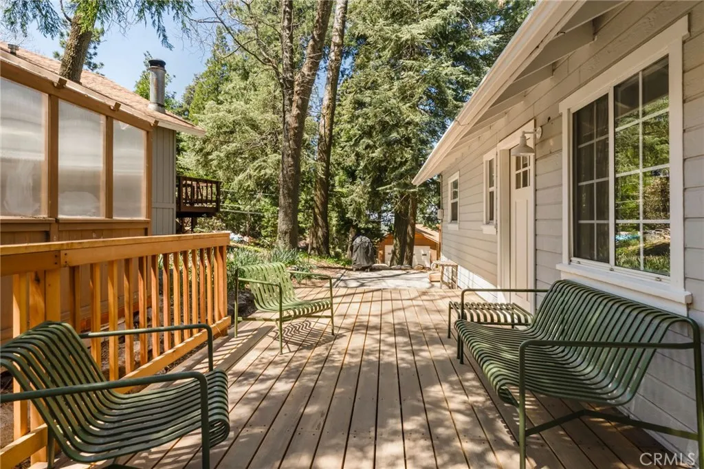 This home has been thoughtfully updated with an inviting Scandinavian aesthetic and organic mountain touches. Located at the end of a cul-de-sac, this property offers a quiet, tranquil respite from the hustle and bustle of daily life. Beautiful masonry along an easily accessible driveway offers ample parking for family and guests. Enter on the upper level to find a light & bright, fully updated kitchen with custom cabinetry and butcher block countertops that opens to the dining area and living room, with large windows that let in the light. A beautiful Hearthstone wood burning stove serves as a focal point in the living room. Down the hallway are two bedrooms, one of which is the primary suite with en-suite bathroom. Across the hallway is the 2nd bathroom. Also on this level is a built-in desk area, stackable laundry closet and access to the newly constructed front deck. Downstairs is the 3rd bedroom and direct entry into the 1 car garage. The backyard features a spacious back deck and large gradual hillside with endless potential. The property has undergone a full renovation in recent years - upgrades include: new electrical, new wall insulation using rockwool, custom tongue and groove wood paneling, interior walls have been soundproofed with rockwool, all new kitchen & bathrooms, new water heater, new front & back redwood decks and more! This charming cabin will steal your heart!
