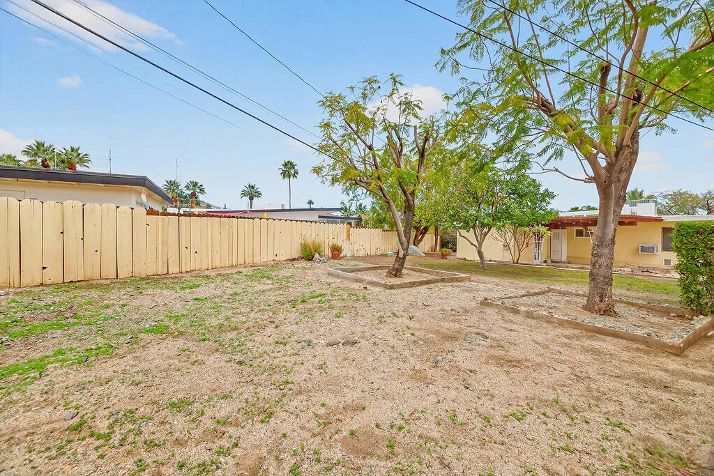 Back on the market. Buyer financing fell through. New LOWER Price. Offering approximately 1,828 sq ft of living space on an expansive 15,882 sq ft lot with room to add a pool. This unique property features a 2-bedroom, 1-bath main residence plus a separate casita with a flexible bedroom that can be divided into living and sleeping areas, along with a bathroom and kitchenette. Both homes share a conveniently located laundry room and include two large storage areas. The main house offers two bedrooms, a full bathroom, a spacious great room with fireplace, a functional galley kitchen, and a covered front patio--ideal for enjoying a morning coffee or an evening glass of wine while watching the world go by. The casita features a versatile living/sleeping space, a bathroom with tub/shower combination and pedestal sink, a galley-style kitchenette, and a full wall of closets providing ample storage. Covered patios at both the front and back of the guest house extend the living space and create inviting areas for relaxing or entertaining. Additional highlights include dual-pane windows, tile flooring throughout, and defined living and dining areas that enhance comfort and efficiency. Live in one unit and rent the other--short-term, seasonal, or long-term rentals are permitted when owner-occupying one unit full time (buyer to verify with the city). Situated on a quiet, private street and surrounded by mature desert landscaping, the property showcases eclectic architectural character and relaxed desert living. Located in the highly desirable Cathedral City Cove, a friendly and diverse neighborhood known for its welcoming vibe and strong sense of community. Centrally located near downtown Cathedral City's theaters, restaurants, and Agua Caliente Casino, with Palm Springs and El Paseo just 15 minutes away. Sewer installation and street repaving were completed in 2007-2008. The 30-year sewer assessment runs through 2035 at approximately $1,482 annually and is paid with property taxes. Located on FEE land with no HOA, this versatile property offers exceptional value, flexibility, and opportunity. Welcome home!