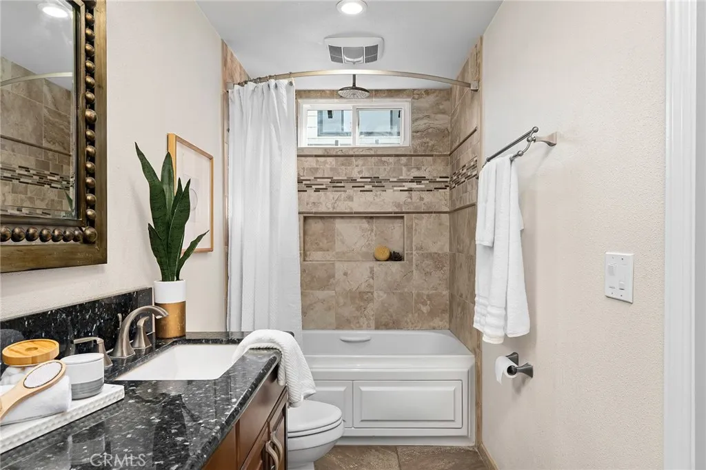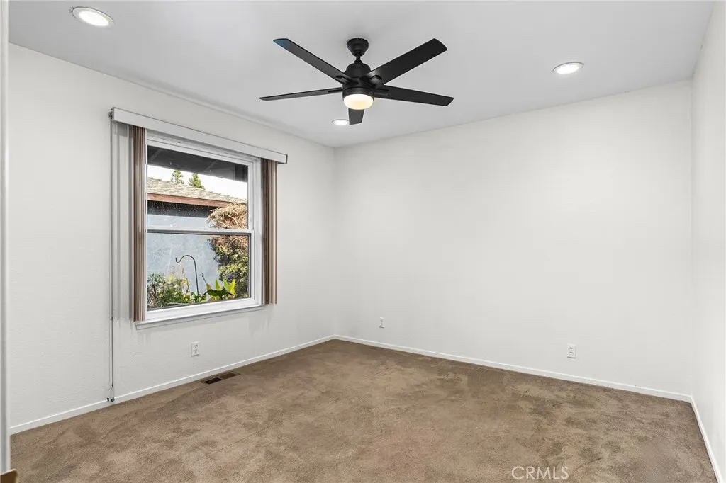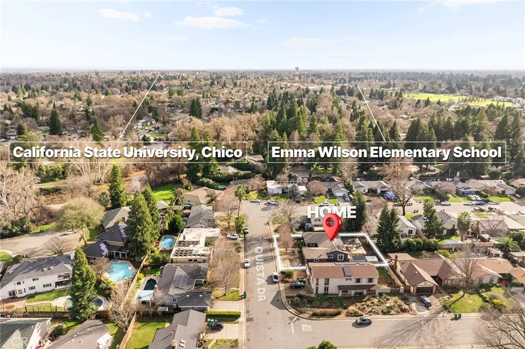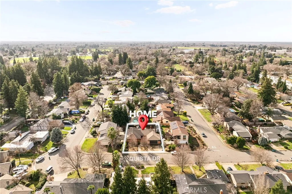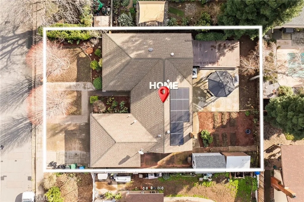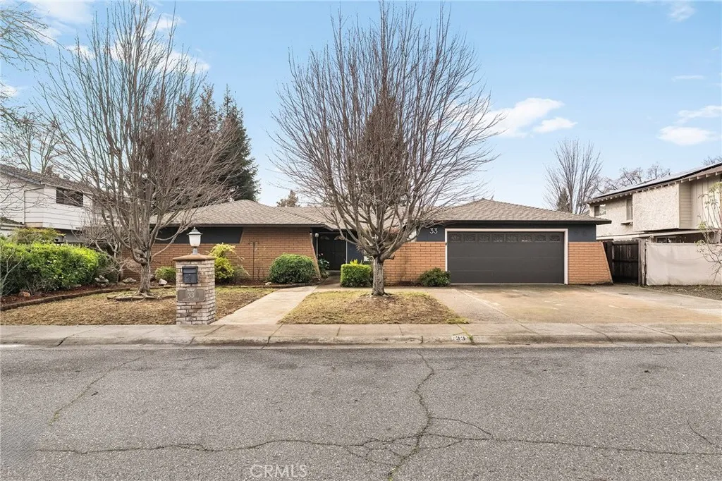 Welcome to 33 Quista Drive, a truly special North Chico home where mid-century charm meets modern design, effortless entertaining, and owned solar for energy efficiency. From the moment you arrive, the curb appeal pulls you in, clean lines, architectural interest, and a timeless look that sets this home apart. Before even stepping inside, you’re greeted by a serene courtyard-style entry with a garden space that creates a calming transition from the outside world. Inside, the home opens into a stunning, light-filled layout designed for gathering, hosting, and everyday living. The dining area flows seamlessly into a sunken living room, while an elevated den-style nook overlooks the space, creating a cozy retreat perfect for reading or unwinding beside the electric fireplace insert. Two large sliders frame the living space, drawing your eye outdoors and reinforcing the home’s incredible indoor-outdoor connection. At the heart of it all is the showstopping kitchen, beautifully remodeled with white flat-front cabinetry, bold black quartz countertops, brushed black onyx hardware, and stainless steel appliances. A pass-through window with bar seating makes entertaining effortless, while an impressive wall of built-in cabinetry nearby offers incredible storage for games, serving pieces, and everything in between. The bedroom layout offers thoughtful separation and comfort. The primary suite is a true retreat, featuring a spacious bedroom and a stunning en-suite bath with dual sinks set into quartz countertops, a jetted soaking tub, and a dual-head shower with rainfall feature. Just off the primary is a massive deck, perfect for morning coffee or evening wind-down time. Additional bedrooms are generously sized, including one with built-in shelving ideal for an office or creative space. The remodeled hall bath features a sleek walk-in tile shower. The backyard is equally impressive, designed for connection and celebration. Enjoy farm-to-table living with established herb and vegetable gardens on drip irrigation, a large concrete patio with an octagonal gazebo for gatherings, and an expansive deck that invites long evenings with friends and family. Two separate storage structures offer flexibility for hobbies, a gym, or extra storage. Centrally located with easy access to all of Chico, 33 Quista Drive is a rare find, stylish, thoughtfully updated, and deeply loved. Homes like this don’t come along often, and when they do, they don’t last long.
