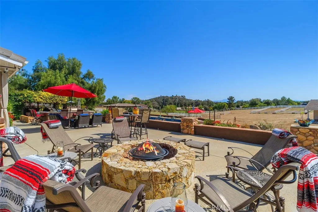 *Buyer incentive: Seller pays the 1st year of homeowner insurance with an accepted offer!* Discover the ultimate in Southern California equestrian luxury living at this exceptional La Cresta estate in Murrieta, set on 5+ fully usable, fenced acres with DIRECT access to La Cresta riding trails. This rare Murrieta horse property offers the perfect blend of ocean breezes, privacy, land, & lifestyle in one of Southern California’s most sought-after equestrian communities. *Watch the linked VIDEO to experience the lifestyle this property offers and envision what life could look like here!* Designed for multi-generational living, this premier La Cresta estate features two single-story residences, ideal for extended family, guests, or potential rental income. The main home offers 3 bedrooms, plus a dedicated office, and a gym or game room, while the second residence includes 3 bedrooms, 2 bathrooms, and an office, providing flexibility for today’s modern living needs. Outdoor living is elevated with resort-style amenities, including a solar-heated pool, above-ground spa, outdoor cooking area, and panoramic mountain and hill views that showcase the natural beauty of the Temecula Valley. A 62-panel fully owned solar system ensures energy efficiency, while the 3,498 sq. ft. workshop and RV garage with lift offers endless possibilities, easily convertible into a luxury equestrian barn, car collector’s garage, or expanded ranch facilities. Built for the horse enthusiast, this La Cresta equestrian property includes a custom two-stall barn with tack and feed rooms, three fenced pastures, a round pen, and ample space to add an arena, additional stables, or training facilities. The property’s fully usable acreage allows for expansion while maintaining privacy and functionality. Enjoy a low tax rate, low-maintenance utilities, and a prime location just minutes from award-winning Murrieta schools, shopping, dining, and convenient freeway access. Situated near Temecula Wine Country, this estate offers the perfect balance of ranch-style living with 2 gardens, fruit orchard, approximately 30 Zinfandel vines - Turn this ranch estate into your homestead dream, with the flexibility to bring your next projects to life. Properties like this which offer acreage, guest houses, mountain views, and equestrian facilities in La Cresta, are rarely available. This is a true opportunity to own a luxury horse property in Murrieta, where lifestyle, land, and long-term value come together.