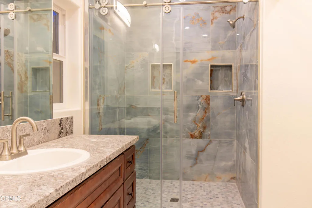 Welcome to Casa del Cielo! A 180 degree view of Camarillo, across to the Santa Monica Mountains, and over the Pacific to The Channel Islands is the horizon that awaits you here. This brand new, custom-built home is quite the private retreat with with a fenced in yard and large back patio. Pulling up to the home from Mission Drive and into the garage you enter the home from garage access door into the large galley kitchen after passing by not 1, but 2 laundry spaces! The kitchen granite counters and custom cabinetry lead you to the cathedral ceiling dining room that has a slider out to the back patio along with a view across the living room. With high ceilings and a glass slider that brings in the scenic mountain view - the living room is truly a place to kick back, relax, and take it all in. Down the hallway are the 3 bedrooms, each getting larger as you make your way to the primary suite. The bathrooms are stylish, each having glass dividers & doors for the walk-in showers along with large, floor-to-ceiling tiles to accent the darker cabinetry. You can access the yard from the primary bedroom's slider as well and once you're out there, you'll feel like you're above it all because you quite literally are overlooking the entire city out to the Pacific. This property must be viewed in-person to know how special it would be to call your home. Be the first to experience all Casa del Cielo has to offer!!