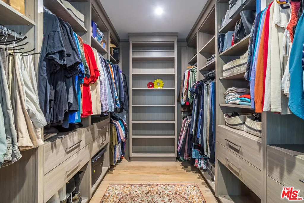 Nestled on a quiet street in the serene Mar Vista neighborhood, 3728 South Barrington Avenue is a stunning architectural home on a generous 8,591 square foot lot. This modern residence, encompassing 3,799 square feet, welcomes you with a dramatic 14-foot ceiling entry and expansive walls of glass that fill the space with natural light, highlighting the elegant refinished wood floors. The thoughtfully designed interior includes a private office, four spacious bedrooms, each with its own ensuite bathroom. The chef's kitchen serves as the heart of the home, featuring an oversized island, Calcutta marble backsplash, and top-tier Thermador appliances, including a new oven and dishwasher. Entertain in style with the formal dining room and integrated speakers throughout this stylish haven. Relax in the expansive great room, complete with a fireplace and 10-foot sliding doors that open to a private, hedge-lined yard with a covered patio and a wide lap pool, and spa, solar heated, with new cover & new electronic control system. The primary suite offers a tranquil retreat with an 11-foot ceiling, fireplace, walk-in closet, and a private deck overlooking the pool. The spa-like bathroom features floor-to-ceiling Calcutta marble, an oversized shower, soaking tub, and dual sink vanity. Additional amenities include a two-car attached garage with 220 EV Charging Plug, tankless water heater, smart home readiness, and a new aluminum electronic slide front gate, ensuring both convenience and security. This Mar Vista gem is an entertainer's delight, perfectly blending luxury and modern living.