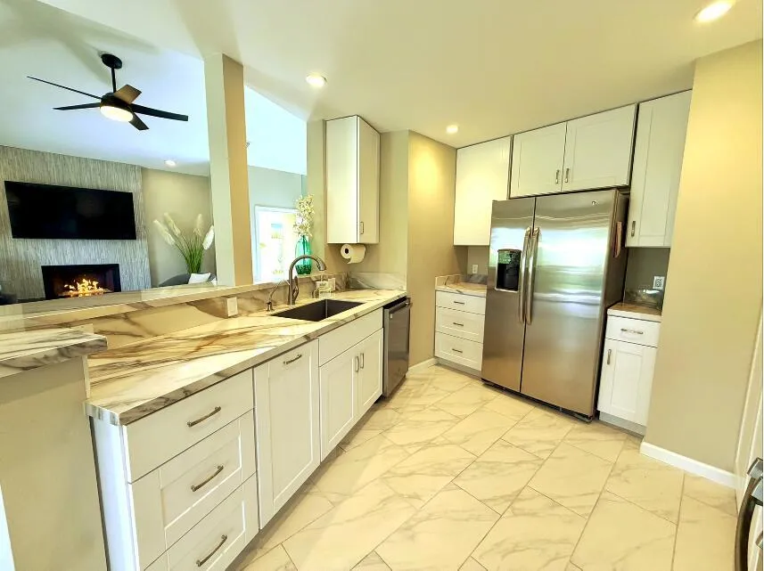 Open House | March 7-8 | 12-3 PMLive the resort lifestyle at prestigious Mission Hills Country Club with this beautifully remodeled golf course condo offering stunning views and exceptional privacy.This turnkey home features an open, light-filled floor plan with high ceilings that makes the space feel far larger than its square footage. The custom-designed kitchen includes stainless steel appliances, new cabinetry, sleek quartz countertops, and a raised bar perfect for entertaining.Both bathrooms have been fully updated with tiled walk-in showers, glass doors, and custom vanities. Enjoy new tile flooring throughout the main living areas, plus plush Berber carpet in both bedrooms.The living space showcases a stunning custom fireplace and wet bar with built-in wine fridge, ideal for relaxing or hosting guests.Additional highlights include: Pet-friendly Gated front courtyard + large fenced back patio Beautiful golf course views 2-car attached garage Refrigerator + washer/dryer included Furnishings availableLand lease paid through 2125.A rare opportunity to own a fully remodeled home in one of the desert's most sought-after communities. Come see it in person - must be experienced to be appreciated.