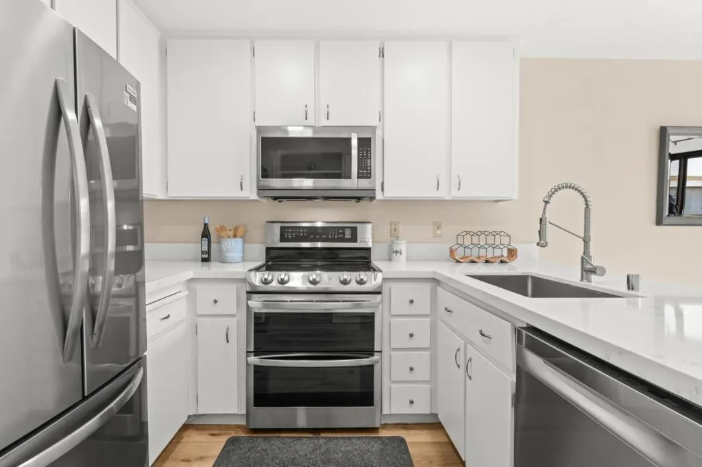Another price reduction! A great value for this beautiful fully remodeled unit. Nestled in the highly desirable Colony Green community, this completely remodeled 3-bedroom, 1.75-bath townhouse offers 1,260 sq ft of stylish living! Enjoy a newly remodeled kitchen with quartz countertops, stainless steel appliances (refrigerator, stove, dishwasher), new central AC and fresh interior paint throughout. New flooring throughout. The light-filled living room boasts vaulted ceilings, while the adjacent dining area opens to a private patio that's perfect for entertaining or unwinding on warm evenings. Upstairs features three spacious bedrooms and a beautiful remodeled full bath. This is the model everyone wants.
