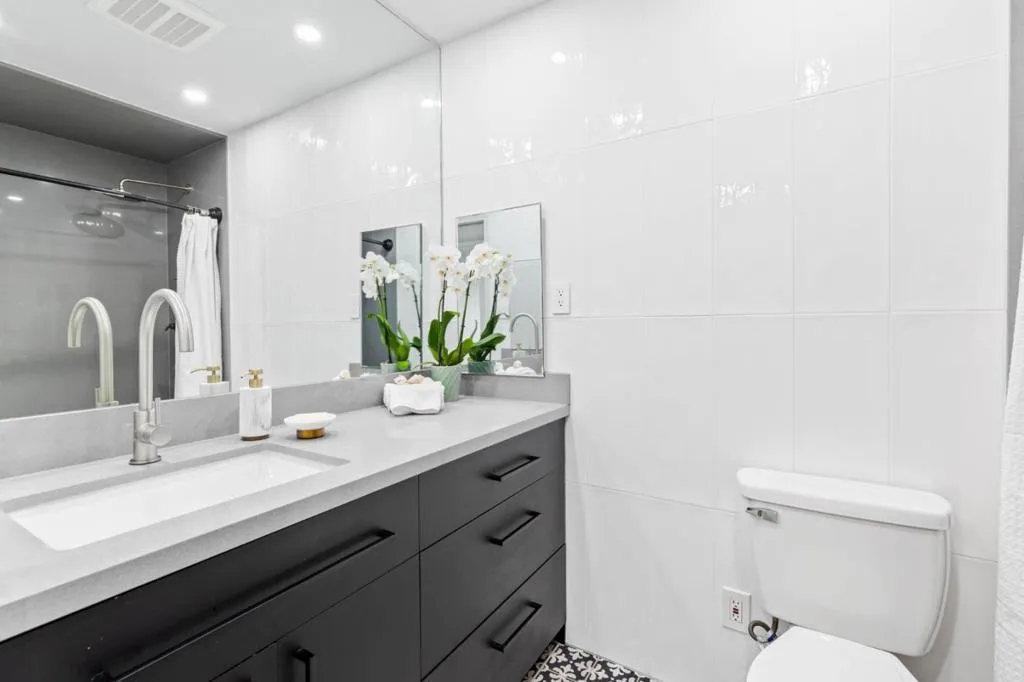 Welcome to 55 Claremont Ave, a stunning condo that seamlessly blends style, comfort, and privacy. Conveniently situated between Redwood City and San Carlos, and within an easy commute to Palo Alto and Menlo Park. This delightfully and lovingly updated 3-bedroom, 2-bathroom home features 1,450 sq ft of open concept living space with a delightfully tree-lined and spacious deck, two dedicated parking spaces, and a secure storage unit behind an electric gate. This home is bathed in natural light, thanks to the many dual pane windows throughout. (FYI: staging was removed) The contemporary kitchen is both chic and functional with custom cabinets, an oversize range, and large windows. Two gorgeous bathrooms feature floor to ceiling tile and custom slab in the showers and high-end finishes, The large bedrooms are light and bright. Unwind by the community pool and BBQ area or enjoy the serenity of your private balcony. Commercial grade washers and dryers in-building. A charming building with only 12 units in a tree-lined neighborhood just steps from Wessely Crescent Park and the convenience of nearby CalTrain, Highway 101, and 280.