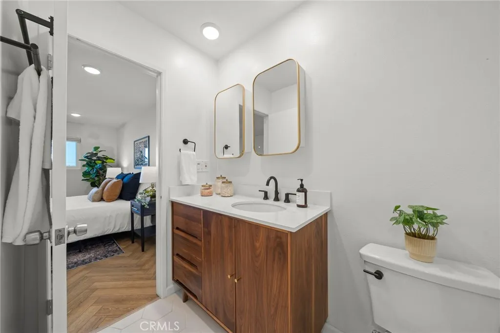 Renovated Coastal Retreat Just Moments from the Beach! Welcome to this beautifully renovated 2-bedroom, 2-bath condominium located just minutes from the beach in one of Long Beach’s most desirable and vibrant neighborhoods. This inviting home blends modern style with coastal comfort and thoughtful upgrades throughout. The home showcases a beautifully remodeled kitchen featuring timeless shaker cabinetry and updated appliances, including a range, dishwasher, and microwave. Elegant, luxury vinyl plank flooring in a herringbone pattern creates a refined design statement throughout the living spaces. Both the primary and secondary bathrooms have been tastefully remodeled with custom vanities, offering a fresh, modern aesthetic. Additional enhancements include updated windows, a newer water heater, recessed can lighting throughout, day/night shades, and ceiling fans. The second bedroom features a custom PAX storage system for everyday comfort and organization. The spacious bedrooms are filled with natural light, and the well-designed floor plan provides an easy flow for living. One assigned parking space and two private storage units in the garage provide rare added storage. Community amenities include shared laundry facilities and a pool ideal for relaxing and enjoying sunny Southern California days. The building has a newer roof and was recently painted, enhancing its bright and inviting curb appeal. Located just blocks from Retro Row, Gusto, Coffee Drunk, and Rose Park, this home offers walkable access to some of Long Beach’s best dining, coffee shops, and boutiques — all while being moments from the shoreline. This is coastal living at its finest — move-in ready, stylishly updated, and perfectly situated. Please note: Home is professionally staged.