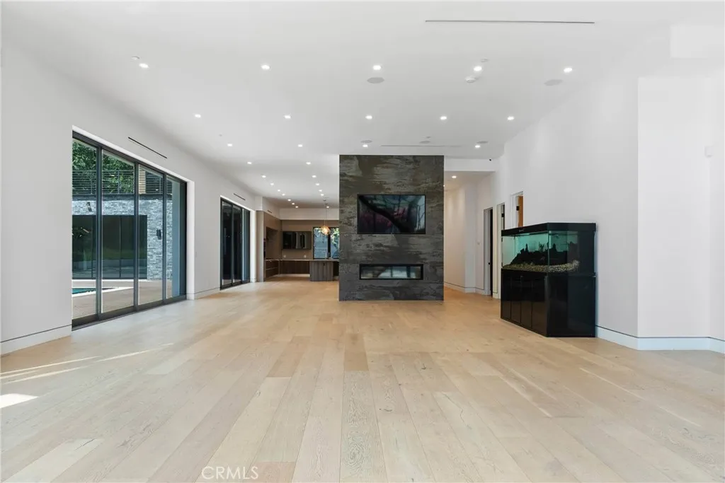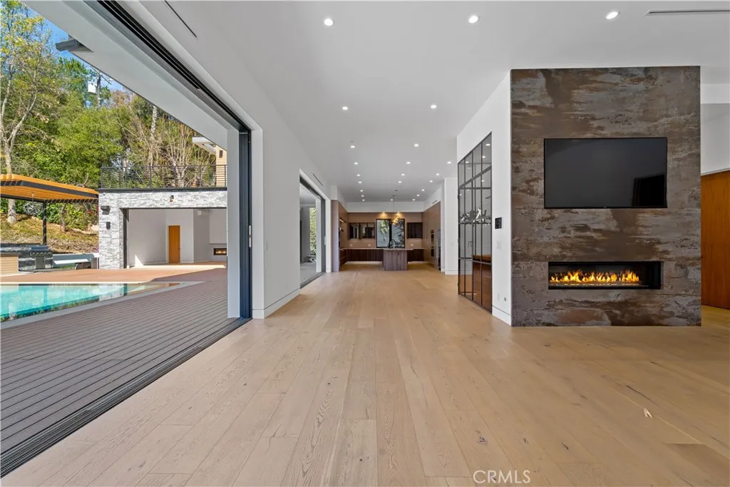 Welcome to your private sanctuary, nestled on a sprawling .68 acre wooded lot. Situated on a flag lot, this estate sits far from the street, ensuring unmatched privacy. A gated entrance and extended driveway lead to a spacious three car garage, with ample additional parking for guests. Step through the breathtaking glass entryway, where soaring 32-foot ceilings, a dramatic chandelier, and striking white oak floating stairs set the stage for this architectural masterpiece. Walls of glass and Fleetwood sliding doors seamlessly blend indoor and outdoor living, flooding the space with natural light and creating an entertainer’s dream. The open concept layout is anchored by stunning oak floors and a sophisticated Italian designed kitchen, featuring a hidden oversized pantry and a wine fridge, perfectly positioned beside an elegant formal dining area. The lower level boasts two ensuite bedrooms, a private office, and a state-of-the-art theater, ensuring ultimate comfort and convenience. Upstairs, the primary suite is a true retreat, complete with a cozy fireplace, a custom walk-in closet, and a spa inspired bath. A private sitting area and relaxation patio offer a peaceful escape. Above the garage, a versatile space awaits, ideal for a gym, studio, or guest quarters, opening onto a spacious outdoor terrace. Step outside into an entertainer’s paradise, featuring a zero edge saltwater pool and spa, a sleek cabana, a fully equipped pool house, and a basketball court. Multiple outdoor patios provide the perfect setting for dining and relaxation, while paid-for solar panels add a modern touch of efficiency. Experience the pinnacle of luxury living, where privacy, elegance, and resort style amenities come together in perfect harmony.