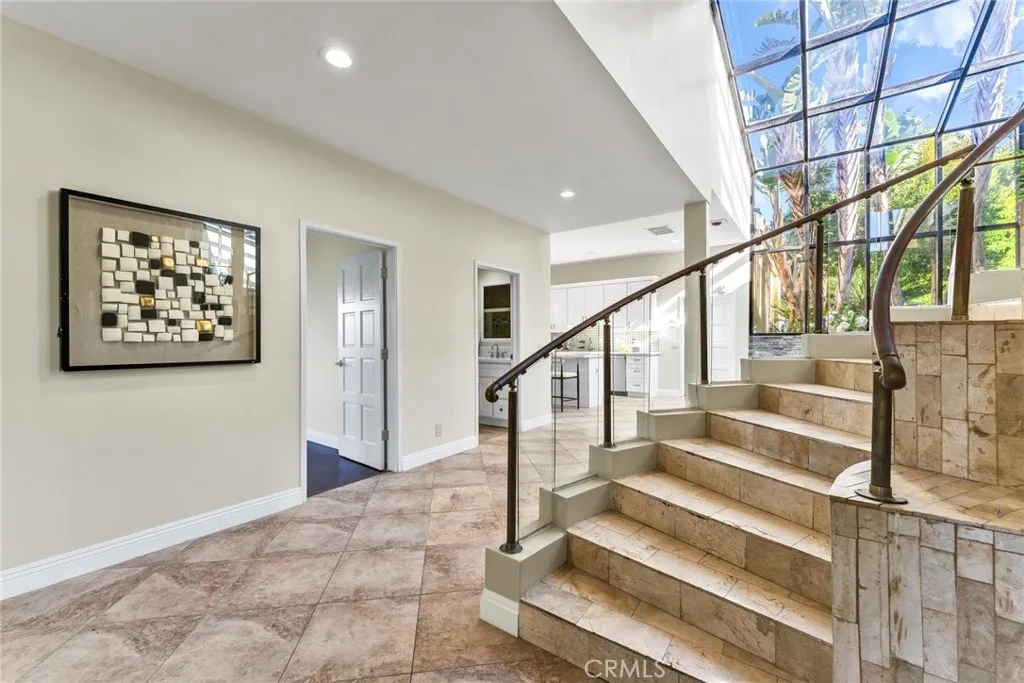 Custom with contemporary flair. Private location across from Del Cerro Park. Uniquely designed open floor plan. Private yard area for enjoying the evening sunsets. Welcome to this beautiful 5 bedroom, 4 bath family estate, situated on top of a secluded hill in Rancho Palos Verdes. This unique property has over 21,000 SF, features 3956 SF, and has expansive views of the sparkling Pacific Ocean, Del Cerro Park, and nearby canyons. Perfect for entertaining, or simply relaxing, while enjoying all of the surrounding vistas. The unique architecture, sets this home apart from the rest! Skylights and lots of windows allow an abundance of natural light to pour into every room. The large, circular driveway has plenty of space. Come and see this hilltop beauty!!