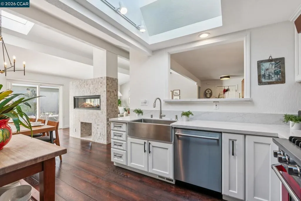 10+ Absolutely updated throughout & charming as can BE! This one story, stair-averse single family home truly has it all. Magnificent Open layout with vaulted ceilings w/ wood beams + skylights AND an attached 2 car garage: this home is hard to beat. The welcoming family room offers abundant light and double-sided gas fireplace. A Gourmet kitchen includes a cherry Viking range & copper hood, extra deep kitchen sink w/ pull down faucet, Quartz slab counters, and Bosch dishwasher. Two pantry areas round out a kitchen that’s as stylish as it is practical. You'll dream of retreating nightly to this dreamy Primary Suite: current owners pulled out every stop here: primary bath delights w/ heated tile floors, heated towel rack, gorgeous tile shower w/ linear drain, shampoo nook, edgeless shower door + dazzling window: the shower alone will enamor you. Featuring dual-sink vanity, smart LED mirrors + a Toto toilet with bidet, this spa-inspired bath is finished with handsome barn door for a touch of rustic charm. But wait- there's more! 2 living spaces, Indoor laundry, an EV charging station, central vacuum, private yard space with new lovely landscape & hardscape. Court-situated home in Diablo West w/ low dues- $510/quarter: offers community pool + clubhouse, close to town/trails/schools.