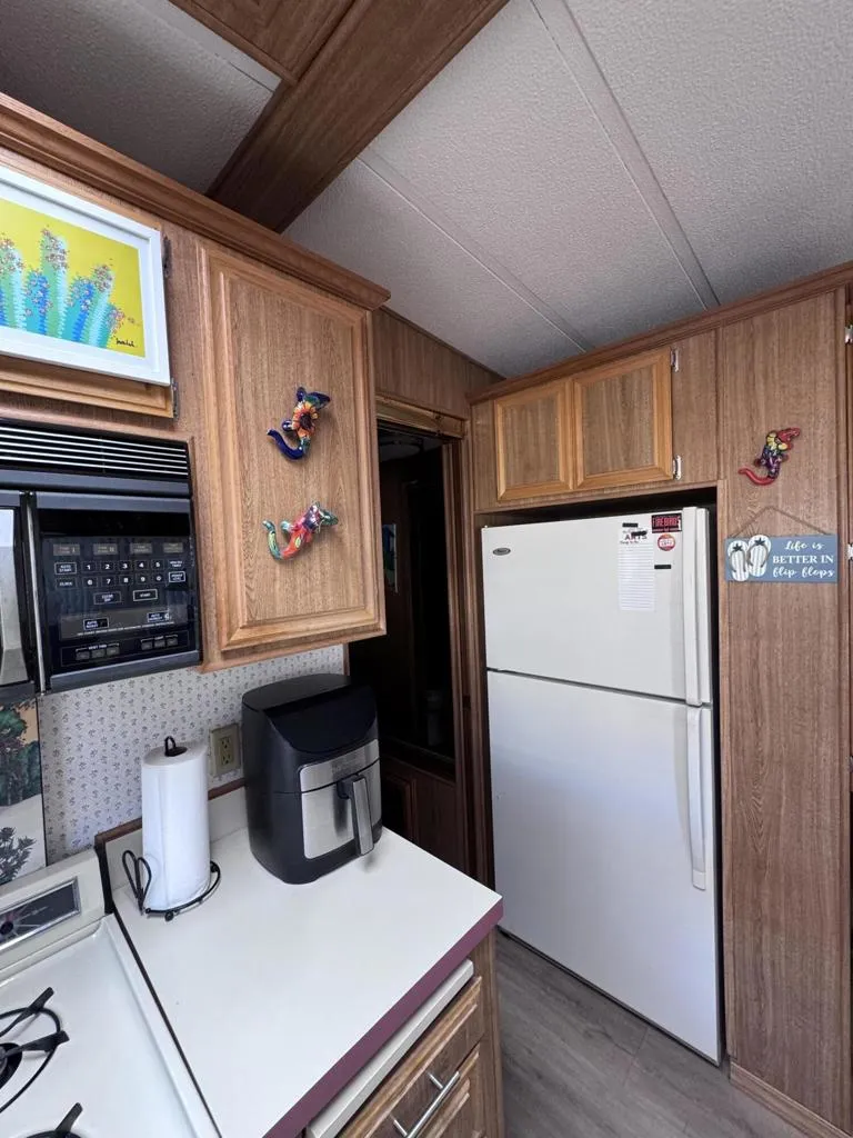 Located in the beautiful Desert Aire resort. Desert Aire is an over 55, pet free, 9 month park. Desert Aire does not permit full time residency. This park is primarily used by snow birds looking to spend the winters in our warmer climate.WOW, check out this location.!!If you are looking for a park model with lots of character and fantastic location, then this one is for you!! This park model is located on the water and offers great water views from the back patio and the beautiful pergola and seating arrangement. Inside you will find the wood paneling is warm and inviting. This park model comes fully furnished with everything you need to use as a rental property or for your own use. The love seat converts into a bed if you need an extra sleeping space for those grand kids that will want to visit. There is lots of storage space in the bedroom and hallway.All of the outdoor patio furniture, BBQ, patio heater and tools in the shed are also included.