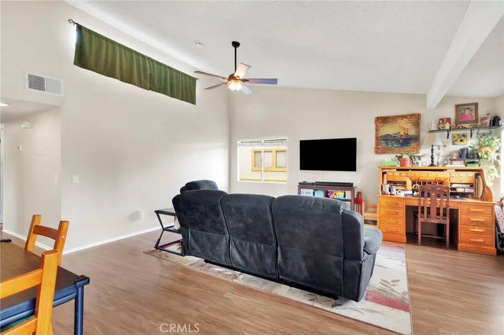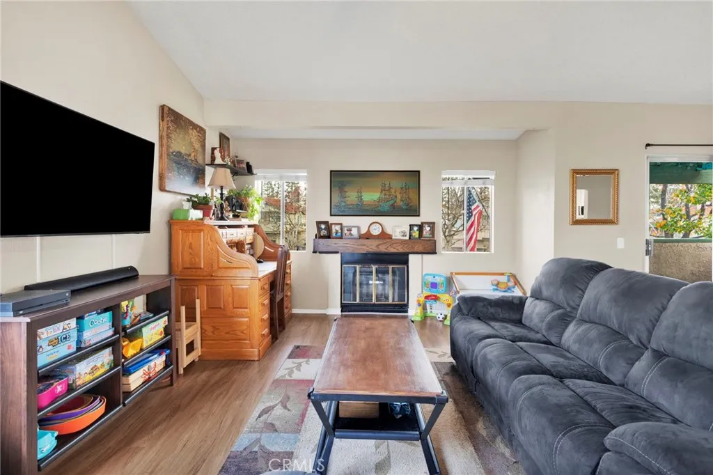 Welcome Home to Meadowood Village! Discover your tranquil retreat in this highly desirable end-unit condo, perfectly situated in one of Rancho Cucamonga's most popular communities. The journey begins at your private, fenced patio entry—the ideal spot for an outdoor BBQ, patio furniture, or a cozy vegetable garden. Step inside the bright, open floor plan, where soaring vaulted, beamed ceilings and a warm, inviting fireplace create the perfect atmosphere for gathering with loved ones. The open concept kitchen which includes built in microwave, gas range, and dishwasher. A covered balcony offers a peaceful spot and extension to your indoor living space to add additional patio furniture and a place to relax and enjoy your morning coffee while taking in the beautiful sunrise. The spacious primary suite feels like a true sanctuary with its own en suite bathroom and a walk-in closet. An attached 2-car garage provides convenience and plenty of storage. The community amenities are second to none, featuring 2 pools, 2 spas, basketball courts, tennis courts, private park, and playground. In addition to all of the awesome amenities, the HOA also covers trash and water! Close to everything you need—shops, schools, and park and just a stone's throw from the dining and entertainment at Haven City Market. Start making memories here!