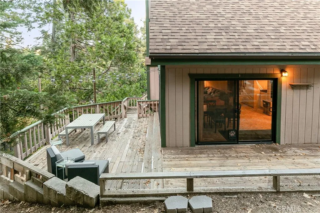Enjoy the best of Lake Arrowhead living in this inviting 3-bedroom, 2-bathroom two-story home, ideally located within walking distance to Orchard Bay, and just minutes from Lake Arrowhead Village. Tucked away among mature forested trees, this home offers privacy and tranquility while remaining close to shops, dining, and year-round recreation. Thoughtfully designed floor plan features a main-level bedroom and two spacious bedrooms upstairs, offering flexibility for guests, a home office, or a creative retreat. The open living and dining areas create a warm and functional gathering space, while mountain and wooded views can be enjoyed from the wrap-around deck, conveniently accessible from the kitchen and dining room, perfect for relaxing or entertaining. Dual access and ample parking from both A Lane and B Lane, adding convenience and versatility. The kitchen includes a washer and dryer for added convenience, and the fenced yard provides a secure outdoor space ideal for pets or enjoying the mountain setting. Whether you’re looking for a full-time residence, weekend escape, or investment opportunity, this home captures the essence of comfortable mountain living with easy access to Lake Arrowhead’s most sought-after amenities.