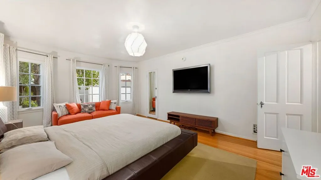 Classic Spanish Lower Unit | Experience timeless Spanish charm with thoughtful modern upgrades in this spacious lower unit of a classic 1930s duplex, situated on a quiet, tree-lined street in the heart of Beverly Grove / Fairfax. The residence offers 3 generously sized bedrooms and 2 full bathrooms, tastefully updated with stylish fixtures. A large, sunlit living room features arched windows, original moldings, and a decorative fireplace. The formal dining room is ideal for entertaining or can easily function as a work-from-home office. The updated kitchen includes quartz countertops, stainless steel appliances, and a breakfast nook. Additional highlights include a dedicated laundry room with in-unit washer and dryer, original hardwood floors, high ceilings, arched doorways, and preserved period details throughout. Central heat and air conditioning provide year-round comfort, while brand-new dual-pane windows enhance energy efficiency and noise reduction. The property includes a private garage with two parking spaces (tandem or side-by-side) and access to a shared backyard, perfect for outdoor dining or relaxation. Prime location walking distance to The Grove, Melrose Avenue, Pan Pacific Park, Erewhon, Trader Joe's, Whole Foods, and some of Los Angeles' best restaurants, cafes, and shopping, with convenient access to West Hollywood, Mid-Wilshire, and Beverly Hills.
