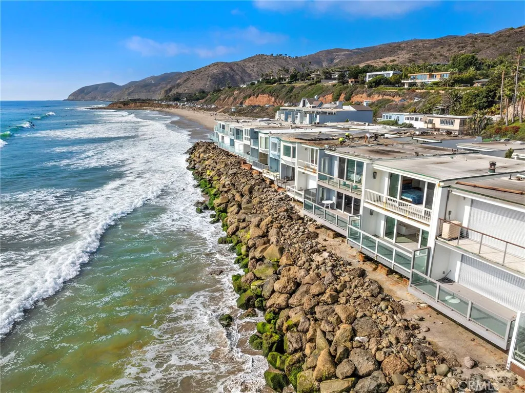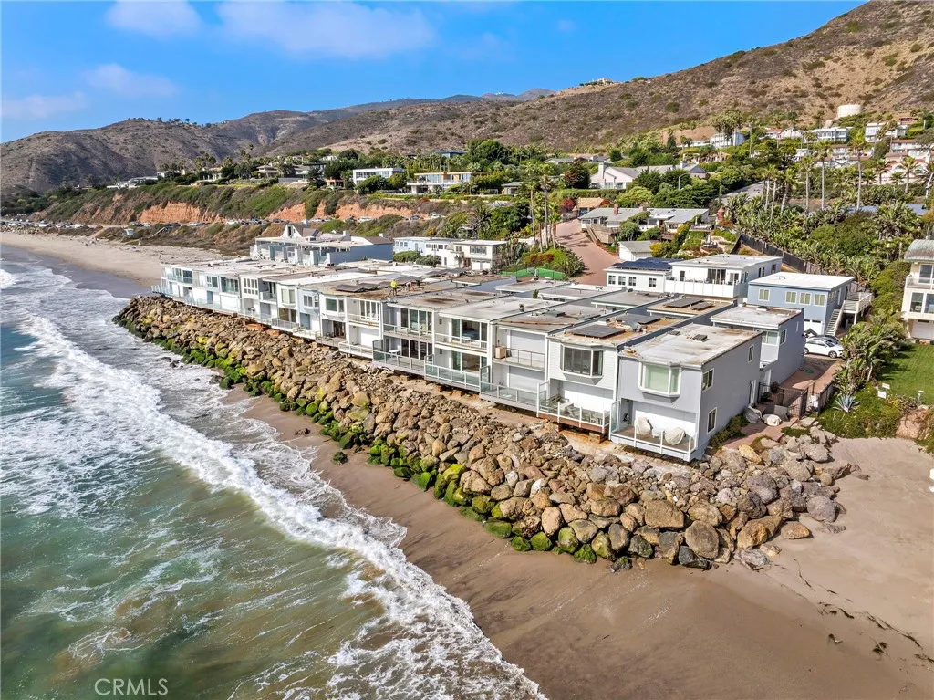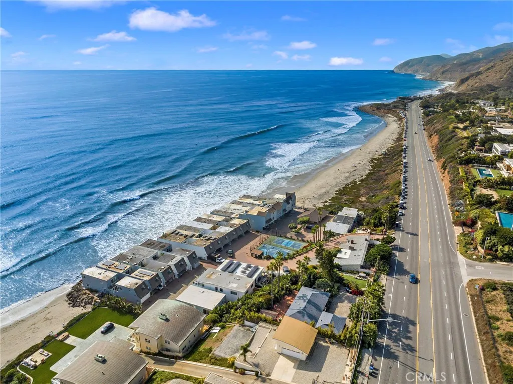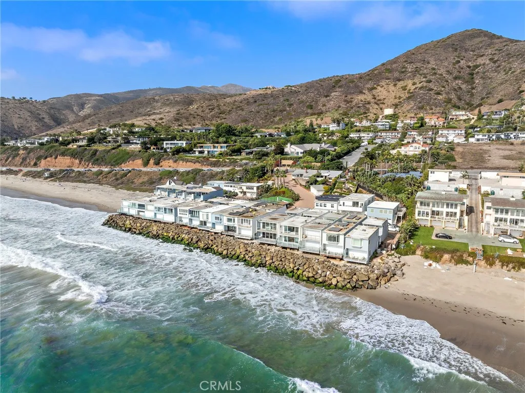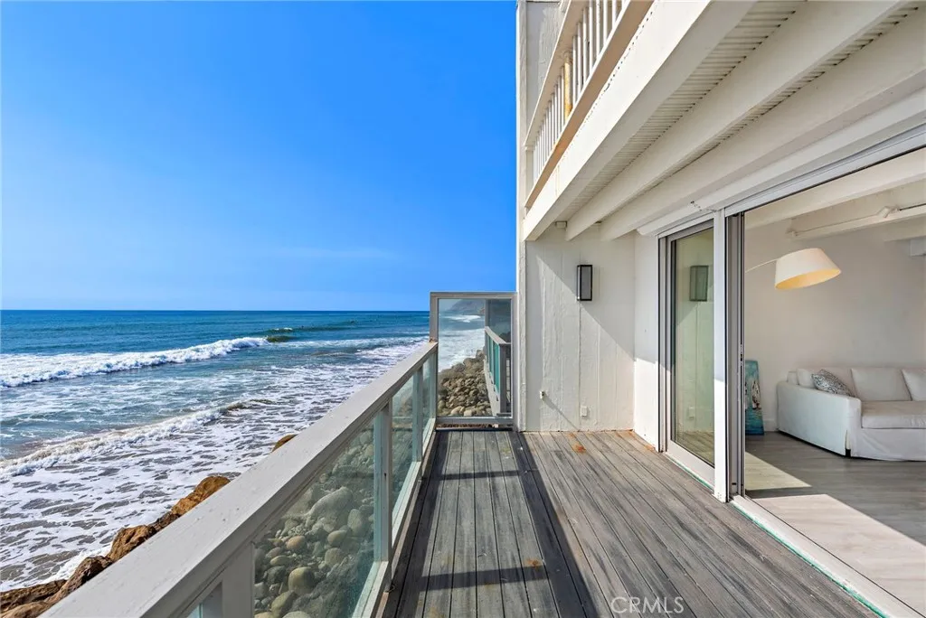 Experience the ultimate Malibu lifestyle in this exquisite 3-bedroom, 3.5-bathroom beach home, designed to fulfill all your coastal dreams. This meticulously remodeled residence features a state-of-the-art Gaggenau kitchen with quartz countertops and a 30-bottle wine cabinet, perfect for culinary enthusiasts and entertaining. The luxurious master bathroom showcases the finest materials, creating a serene retreat. Step outside to the enchanting outdoor courtyard, a rare gem for beachfront properties, providing an ideal setting for al-fresco dining and relaxation. The charming 1-bedroom, 1-bathroom guest house, nestled across the courtyard, offers limitless potential for guests or creative use. Enjoy the convenience of 2 parking spaces and effortless access to two pristine, sandy beaches. Situated in a tranquil, gated community off PCH, this property also boasts fantastic amenities, including a paddle tennis court and a sport court. With breathtaking ocean views, this stunning Malibu home sits directly over the water, offering a private balcony off the primary bedroom and another balcony from the second bedroom overlooking the courtyard. The open-concept living area is accentuated by panoramic views and a cozy fireplace, seamlessly connecting to a spacious balcony that hovers over the beach. Additional highlights include a custom refrigerated wine cellar and tasteful design elements throughout. This home is truly a must-see for anyone seeking luxury living by the ocean!