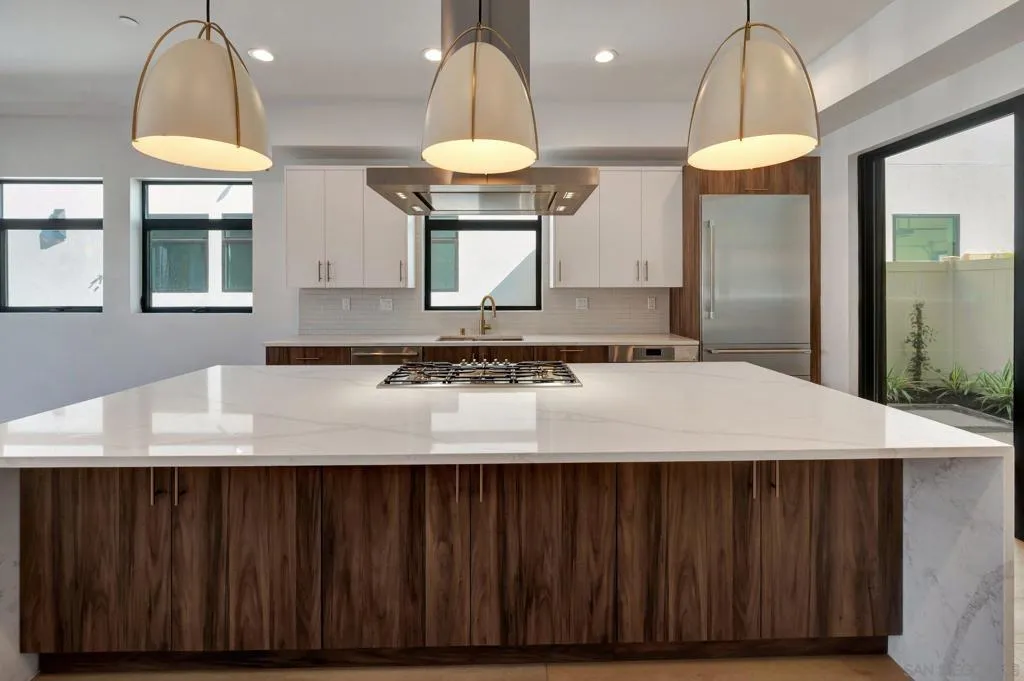 Experience seaside luxury in this newly built detached townhome, perfectly zoned for vacation living and just steps from the sand. Enjoy breathtaking ocean views from multiple levels, including a spacious rooftop deck complete with an outdoor kitchen and romantic fireplace — perfect for entertaining or relaxing under the stars. This 3-bedroom home features two primary suites, each with walk-in closets, spa-inspired bathrooms, and private view decks. The third bedroom and additional mudroom provide ample flexibility for guests or a home office. The heart of the home is the chef’s kitchen, showcasing a waterfall quartz island, Thermador appliances, and top-of-the-line designer finishes throughout. The sun-drenched living room boasts floor-to-ceiling windows and cantina-style doors, seamlessly connecting the indoor living space to your ocean-view yard. Additional highlights include: Front yard and private courtyard 2-car garage with EV-ready infrastructure and future battery capability Solar energy system for sustainable living Professionally designed interiors with luxury fixtures and finishes This coastal masterpiece blends modern design, high-end craftsmanship, and unparalleled location — the ultimate retreat by the beach.