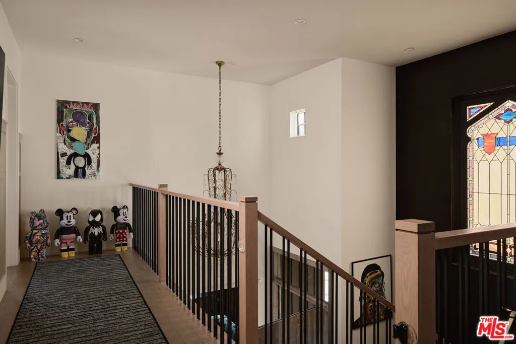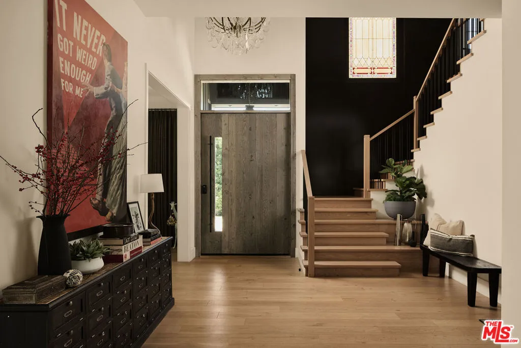 Tucked behind gates in the renowned Amestoy Estates where opportunities to own are rare, this extraordinary 6-bedroom, 7-bath residence offers approximately 7,200 square feet of refined elegance and character. Designed in its entirety by acclaimed Celebrity designer Kishani Perera, every detail was thoughtfully curated. The home blends sophistication with a rock-and-roll edge, featuring a hidden movie theater accessed through a bookshelf and multiple areas across the property that feel like a private resort. Custom reclaimed wood doors, warm built-ins, hand-selected wallpapers, cabinetry, lighting, and trim create a rich, layered interior, while vintage Parisian chandeliers and stained-glass windows add timeless charm. With parking for up to 13 cars, exceptional privacy, and a setting that truly lives like an estate, this is a rare and unforgettable retreat. Bold, distinctive, and completely one of a kind.