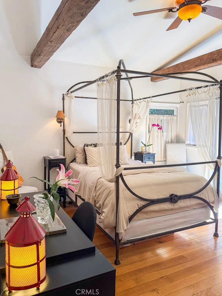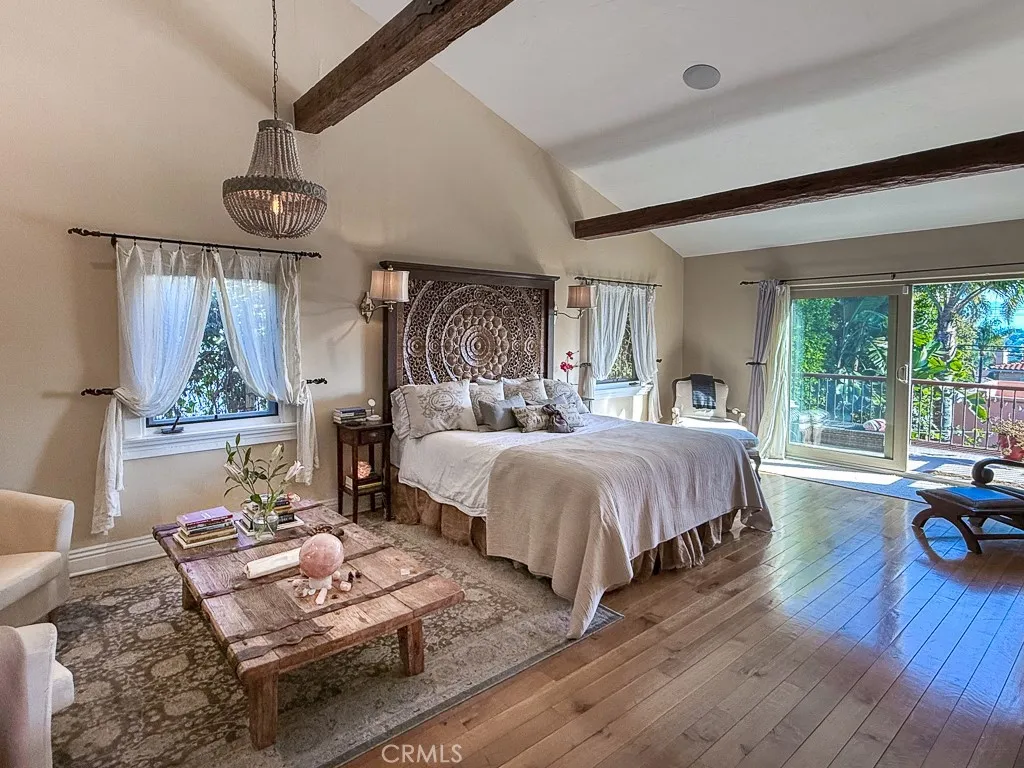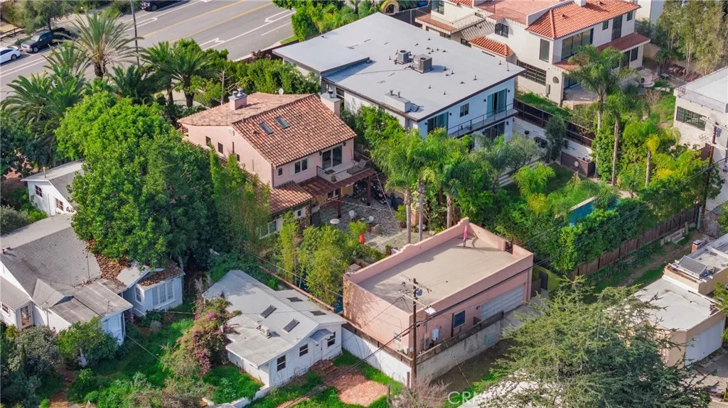 Top of Grand View! Large lot, pool, spa, yard, and views! Custom-built artist's estate sits on just under a 10,000 square ft lot. Two-story main home is California-Spanish style with mission tile roof. Across the salt pool is full sized guest house and garage/studio. The main house has 4 bedrooms and 5 bathrooms, including a spacious upstairs primary suite with two patio balconies facing ocean and mountains including a wood burning fireplace. Timeless charm throughout with huge, reclaimed wood beams and doors, multiple decks, and seamless indoor–outdoor flow. The foyer opens to a living room with Moroccan-tile fireplace, leading to a versatile family room, dining room, and open cook's kitchen with center island, custom tile work, and cabinetry. Three additional bedrooms and 3 bathrooms on the main level. The entertainer’s backyard includes a brick pizza oven, large patio, yard, and saltwater pool/spa. The guest house with kitchen and bath sits below a rooftop viewing deck offering nearly 360-degree views of Mar Vista with ocean breezes, and distant views from the Hollywood Sign to the ocean. Truly, a one-of-a-kind property.