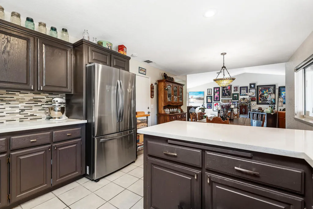 Welcome to Mission Lakes Country Club! This well maintained, quiet, three-bedroom, two-bathroom home offers approximately 1,666 square feet of living space. The spacious layout is filled with abundant natural light, creating a bright and airy atmosphere. The home features a low cost, leased, highly efficient solar energy system with upgrades in process that will include a battery backup system, providing sustainable energy solutions.The generous lot size allows for ample outdoor living, with a fabulous, spacious covered patio and desert landscaping that complements the home's aesthetic. Attractive laminate and tile flooring throughout adds warmth and elegance, while the open concept design seamlessly connects the living spaces.The kitchen provides abundant cabinetry, tile backsplash, and generous countertop space, making it an ideal space for meal preparation and entertaining. The vibrant decor and ample storage throughout the home contribute to its overall appeal and high functionality.After a great round of golf on the 18 hole Ted Robinson Championship golf course, enjoy outdoor living on your wonderful large and covered patio. Or choose many of the Mission Lakes amenities - dinner at one of the restaurants, relax and swim in the heated pool or spa. You can also enjoy tennis, or exercise in the fitness center, socialize in the clubhouse - just pursue and live your best life! All this at an exceptionally low HOA of $507 month with a $600 annual food spend. THE BEST VALUE - Your monthly $507 includes unlimited golf for two on title! This lovely home and property are in a great location, with easy and direct access to the greater Coachella Valley. Schedule your tour today!