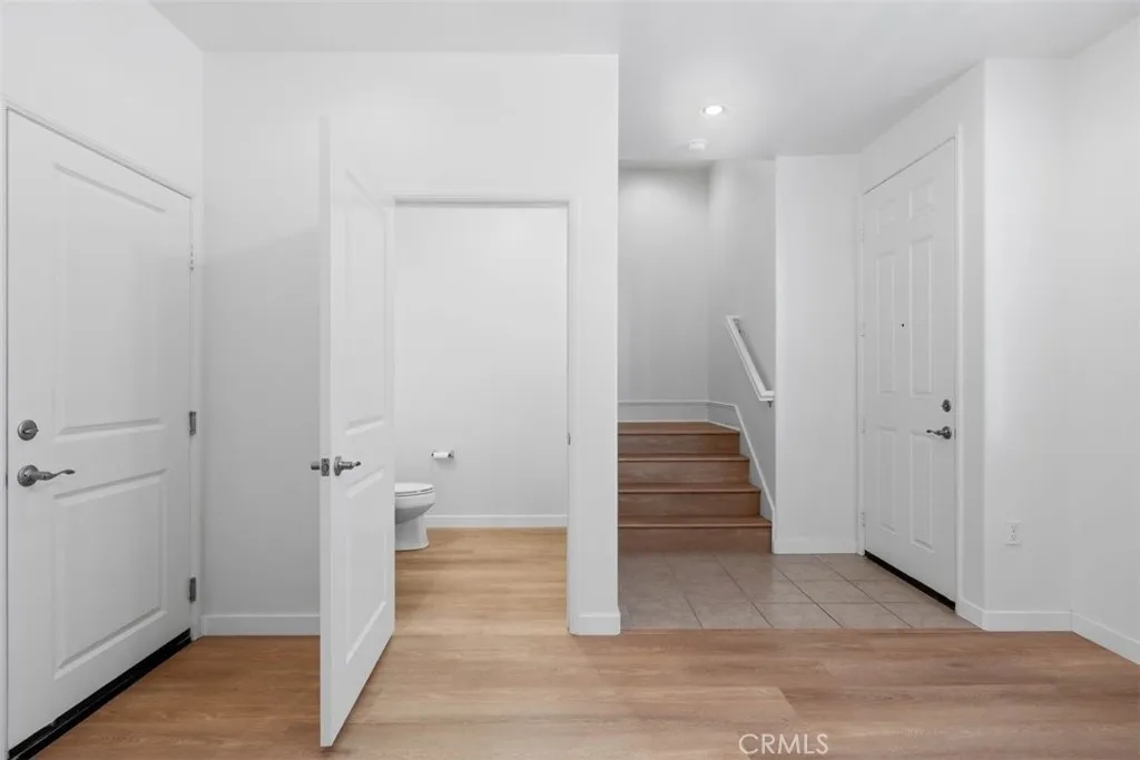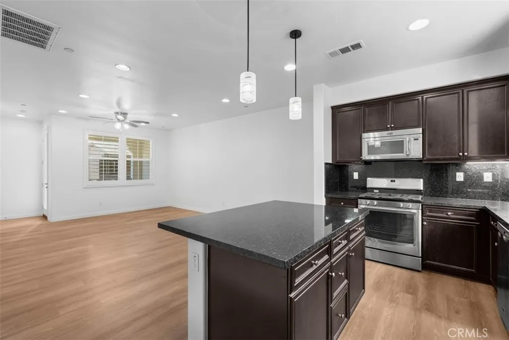 Step into this move-in ready, three-story condo featuring new paint and brand-new wood-vinyl flooring throughout. The first level welcomes you with a flexible office/den or mudroom, plus a half bath, and direct access to your private two-car garage. On the second floor, enjoy an open-concept living and kitchen space with granite countertops, stainless steel appliances, a refrigerator, and a large center island with new lighting. A private balcony offers the perfect spot to relax and enjoy beautiful Southern California evenings, and an additional half bath on level two adds convenience. The third floor features three bedrooms, including a primary suite with a private bath, dual sinks, and a walk-in closet, plus two additional bedrooms and a full hallway bath. 9-foot ceilings, wood shutters, and light, airy finishes create a bright and spacious feel throughout. Located in the desirable Eastvale/Mira Loma area, this home is walking distance to shopping, dining, fitness, and medical facilities, with award-winning schools and easy freeway access. This Nexus community offers a pool, spa, playground, and BBQ area, and the purchase of the home includes washer, dryer, and refrigerator. A perfect blend of comfort, convenience, and location. This beautiful home in the heart of the I.E. could be yours!