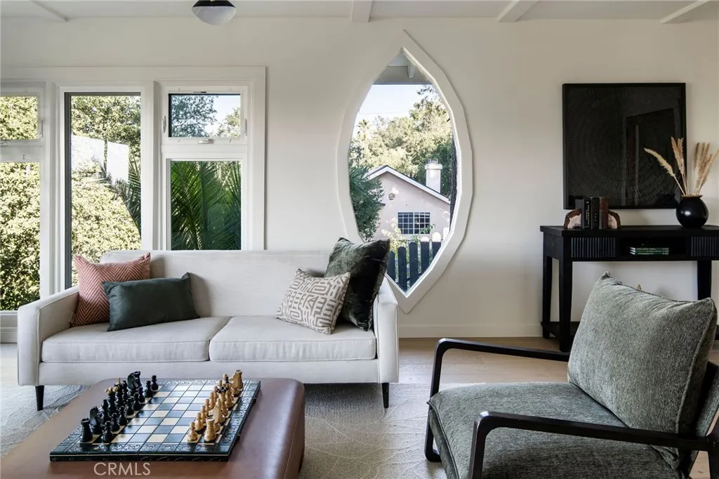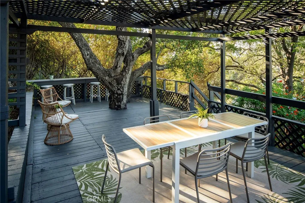 Magical Eagle Rock treehouse alert! Tucked away, set back from the street, nestled amongst majestic trees and sparkling city lights hides a tranquil sanctuary overlooking the iconic Eagle Rock, San Gabriel Mountains and the world below! Welcome to Casa Escalón, another work of art brought to you by Helmut W of Archwood Design Haus! Located in prime Eagle Rock, just a few blocks from all the trendy shops and eateries on nearby Colorado Blvd, yet exuding a wonderful feeling of seclusion and connection to nature. This immaculately designed 3-bedroom, 2-bath refuge will inspire joy from the moment you step foot inside. Natural light, thoughtful finishes, exquisite craftsmanship, updated systems and good energy collide in the best of ways! From the moment you enter the front courtyard you will feel like you have left LA and found your own private safe haven. Inside, warm wood floors span the bright airy layout and dramatic windows and sliders overlook nothing but greenery and awe inspiring views in all directions. The living and dining spaces flow effortlessly and the gorgeous chef's kitchen leaves nothing to be desired with custom cabinetry, designer selected hardware and top of the line appliances. The ultra dreamy primary suite opens up directly to a custom deck where you can sip morning coffee while soaking in uplifting sunrise views over the vistas. The lower level is perfectly appointed w/ two additional bedrooms, an epic customized laundry room and a grand bathroom with clawfoot tub / shower combo. Out back, the lush backyard is pure serenity! The expansive nearly 8,000 sq ft lot serves as an idyllic canvas for multiple terraced decks, lounge areas and flat space for quiet meditation, amazing dinner parties and endless play! One of the decks was built around a beautiful old tree and features a built-in bar seating area under the shade of the tree! This property is truly unique in that it offers the rare combo of sweeping views mixed with usable backyard space, sought after schools and easy proximity to all the trendy shops and cafes. This one is a rare gem in a phenomenal neighborhood!