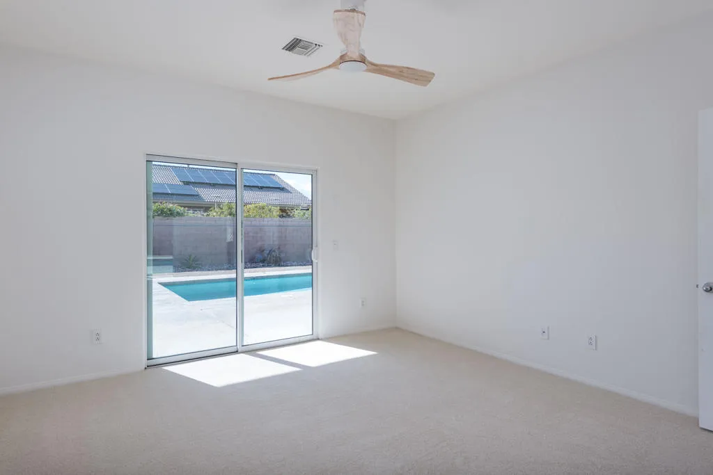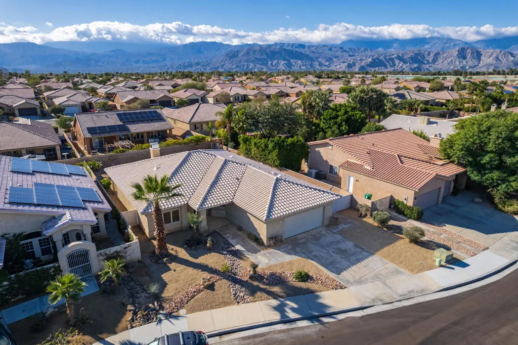 * 3BR/2BA detached Single Family Home on fee land with no HOA* Open floor plan with vaulted ceiling living room/dining area, gas fireplace and direct access to a covered patio and gorgeous pool & spa, perfect for indoor/outdoor living and entertaining* Grand chef's kitchen with center island and 2nd sink and a 5-burner gas cooktop* Large primary bedroom, with direct access to the covered patio and pool deck, ensuite spa-like bath with soaking tub and separate shower and walk in closet* 2 additional excellent sized bedrooms* 2nd bath with shower over tub* Separate laundry room * Private yard with beautiful pool & spa Covered patio with recessed lighting and ceiling fans* Tiled floors throughout, brand new carpet in the bedrooms* New ceiling fans and new LED recessed lights throughout * Double paned windows throughout* 2-car side by side garage* 1838 sq ft, 9,148 sq ft lot & built in 2003 (per tax record - not verified by sellers or agent)* Fantastic Palm Desert location close to freeways, schools, shopping center and renowned golf courses