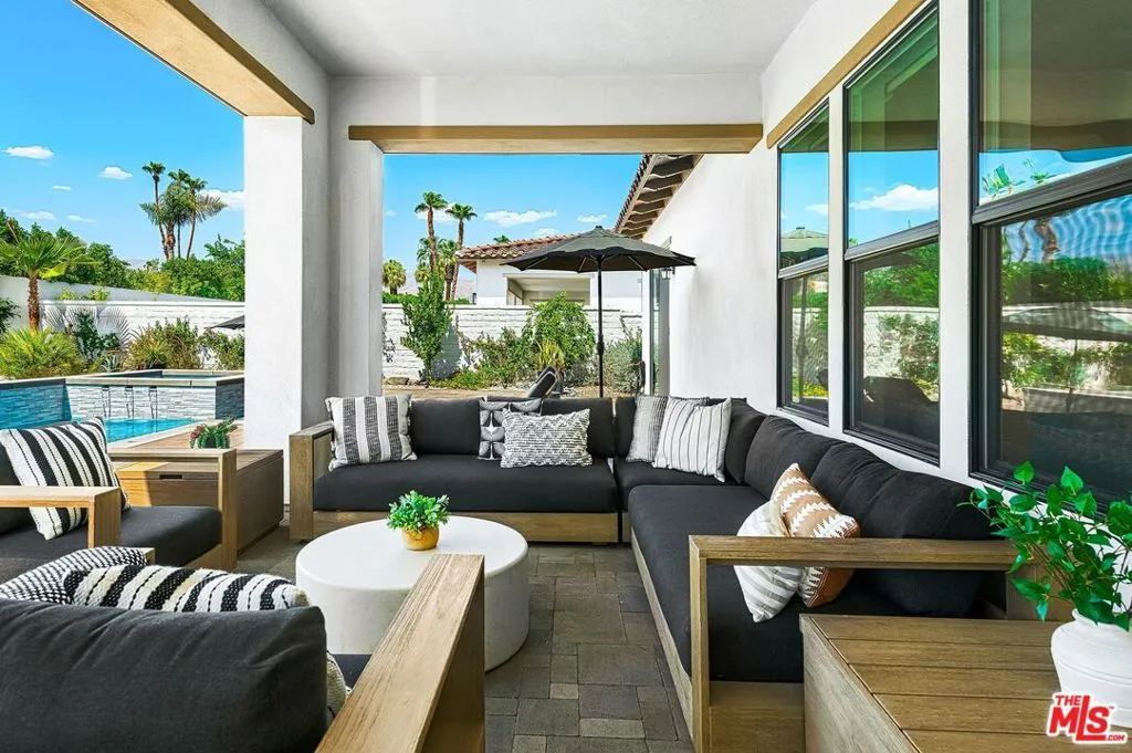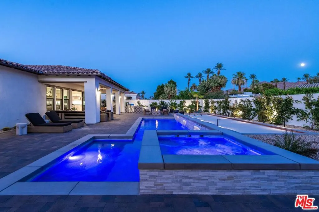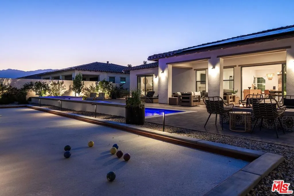 AVAILABLE MAY- SEPTEMBER 2026. UNAVAILABLE OCT 2026 THRU MAY 2027. Prices vary per month- please inquire for exact prices and latest availability. Welcome to Villa Chic, your luxurious retreat nestled in the heart of Indian Wells. This brand-new, chic modern Mediterranean home offers the epitome of sophisticated living with its impeccable design and lavish amenities. As you step inside this stunning villa, you are greeted by the spacious and elegant living area adorned with designer furnishings and captivating artwork. Sink into the plush seating and unwind in front of the 80-inch TV, perfect for cozy movie nights or catching up on your favorite shows. The villa boasts three luxurious bedrooms, each offering its own private sanctuary for relaxation. With five exquisite bathrooms, including master ensuites, every guest will experience the utmost comfort and convenience during their stay. Indulge in outdoor living at its finest with the expansive pool area featuring a refreshing Baja shelf and a tranquil waterfall spa. Challenge your friends and family to a friendly game of Bocce ball on the private court, or simply soak up the California sunshine while lounging on the stylish poolside furniture. Entertain in style in the chef's kitchen, complete with a large island and bar seating, sure to wow your guests. Whip up culinary delights with top-of-the-line appliances and ample counter space, then gather around the impressive island for casual dining and conversation. Step outside to the spacious loggia, complete with al fresco dining and a cozy conversation area. Fire up the built-in BBQ and savor delicious grilled meals while admiring the breathtaking mountain views that surround the property. For those looking to explore the area, take advantage of the complimentary golf cart and bikes provided for your convenience. Discover all that Indian Wells has to offer, from world-class golf courses to upscale dining and shopping destinations. Experience the height of luxury and sophistication at Villa Chic, where every detail has been meticulously crafted to ensure an unforgettable stay in paradise. Book your getaway today and indulge in the ultimate desert retreat. MAY -$12,000 | JUNE - AUGUST $8,000 | SEPTEMBER $9,500 | OCTOBER - NOVEMBER $10,500 | DECEMBER $12,500 | JANUARY - APRIL $15,000
