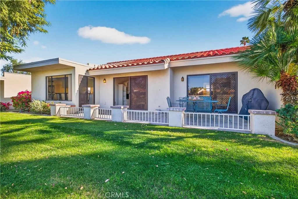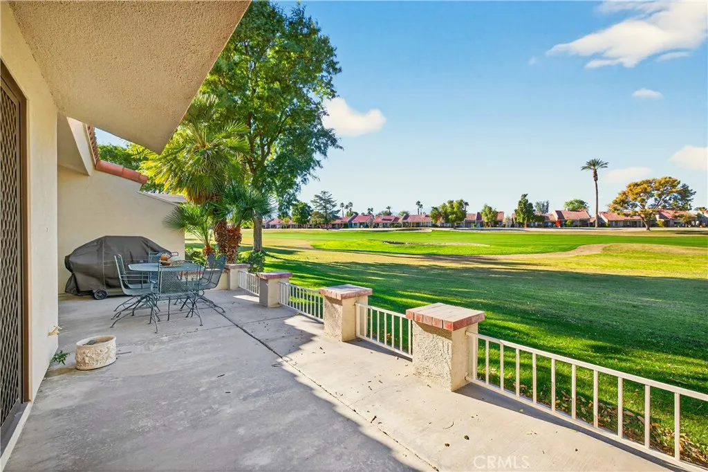 Welcome to this inviting single-level condominium with 2 bedrooms, 2 bathrooms, plus a versatile den, located within the highly sought-after Palm Desert Resort Country Club. Ideal as a full-time residence, seasonal escape, or investment opportunity, this home and HOA allows both short- and long-term rentals. Filled with natural light, the home features bright, open living spaces with high ceilings and an easy-flow floor plan designed for everyday comfort and effortless entertaining. Large windows capture beautiful views of the sparkling pool and spa, the lush golf course greens, and the stunning Palm Springs mountain backdrop. Palm Desert Resort CC is known for its active, social atmosphere and impressive resort-style amenities. Residents enjoy 20 community pools and spas, an 8-hole par-72 championship golf course and driving range, six tennis courts, 32 pickleball courts, and two bocce ball courts, along with a clubhouse offering a bar and lounge, dining room, café, and pro shop. The community HOAs also include cable and internet, trash service, and peace of mind with a 24-hour attended gate and roaming security patrol. Beautifully maintained grounds, nearby hiking and biking trails, and convenient access to shopping, dining, and all that Palm Desert and the greater Coachella Valley have to offer make this an exceptional place to call home. With its inviting interior, vibrant community, and prime location, this condo offers a wonderful opportunity to enjoy the desert lifestyle to the fullest.
