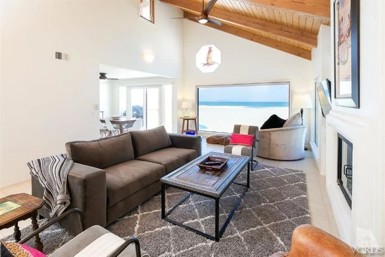 Villa Playa offers stunning beachfront living with latte-colored sand, blue skies, ocean views, and offshore islands.First floor: Two beachfront bedrooms (one king, one queen), a large bathroom with walk-in shower and double sinks, a full laundry room with extra refrigerator, linens and beach towels provided, plus a porta-crib and stroller. A large closet holds beach sandals and wetsuits. The garage includes a ping-pong table, beach chairs, kites, four bicycles with helmets, and sports equipment.Second floor: Expansive ocean and Channel Islands views, a spacious living room with high beamed ceilings, picture windows, and ample seating. A large dining table seats 12, with an adjacent balcony and binoculars for dolphin and whale watching. The fully equipped chef's kitchen features stainless appliances, ample cookware, coffee makers, blenders, condiments, and seasonings. Also on this level are a powder room and a large family room with sleeper sofas, wet bar, games, books, toys, and TVs. Lifeguard station nearby (seasonal).Third floor: Luxurious master suite with king bed, private balcony with chaise lounges, and a spa-style bath with walk-in shower, jacuzzi tub, and double sinks.Additional features include a gas barbecue, five flat-screen TVs, and a fully furnished layout. Pet-friendly (up to 30 lbs, fee applies). No smoking.1 Year lease.