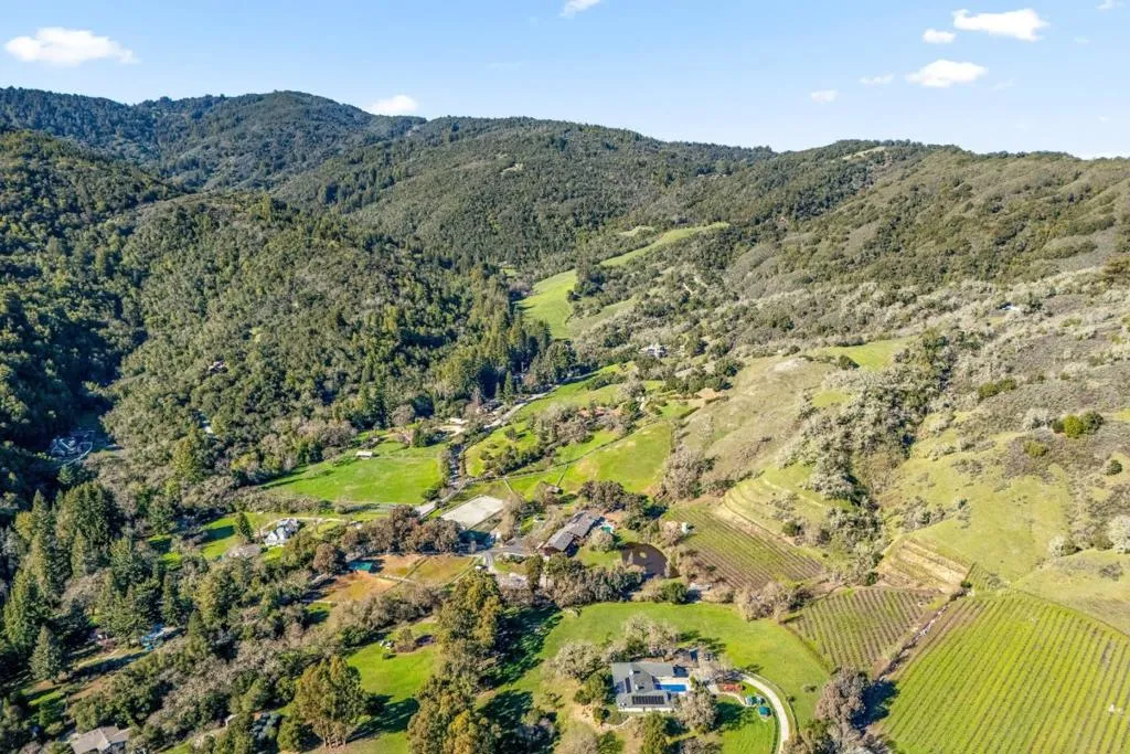A great multi use property west of Gilroy in the bucolic Redwood Retreat wonderland. An estate with two homes on 14+acres. FIRST HOME: Approximately 4000 SF with 5 bd 3 ba, or configure for office, den, Au Pair or multi-gen living. Separate family, living, dining and spacious eat in kitchen. Delightful SS kitchen with new double oven, compactor, and dishwasher. Large bedrooms, 3 with walk-in closets and built in storage. Laminate plank flooring and refreshed paint. SECOND HOME: Approximately 1900 SF, 2 bd 2 ba, SS Kitchen Aid appliances. Remodeled baths. Hardwood floors and refreshed paint. GARAGE: Attached is a four-door garage with capacity for 8 cars with workbench and storage. Enjoy the views of the outside hills, Gunite POOL, wildlife from the expansive windows, or appreciate them from the multitude of patios and decks. Outside are EQUESTRIAN delights. 16 stall breezeway barn with tack room, turnouts, new hot water heater, wash area, and laundry. Numerous pastures, a professional 100x240 arena, and stand-alone hay barn. Do not miss the Cabernet vineyard, chicken coop, gazebo with fire pit, seasonal pond and outbuildings. Should power go off the entire property is serviced by auto start GENERAC generators. Leased solar. Homes are private, yet not isolated.