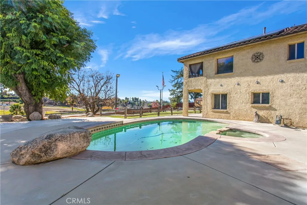 Resort-style living meets everyday comfort in this unique Yucaipa property set on an expansive 17,820 sq ft lot. This 3-bedroom, 3-bath home offers 1,944 sq ft of thoughtfully designed living space with water shares and solar ( loan) for energy efficiency and long-term savings. The interior was completely rebuilt in 2010 and includes sound-resistant walls and insulation, while the pool, HVAC system, Electrical and windows were also redone for added efficiency. Behind a fully fenced yard with remote gate access, the property features an entertainer’s backyard complete with a sparkling pool and spa, 5-hole putting green, dog run, and abundant space for RV parking, boat, work trucks, or recreational toys. Inside, the open-concept layout showcases custom finishes throughout, including a living room fireplace, custom kitchen cabinetry, granite countertops and center island, pantry, travertine flooring, and a dining area. The main level includes a 3/4 bathroom with direct pool and backyard access, a convenient laundry room, and a flexible utility or home office space. Upstairs, two bedrooms share a well-appointed bathroom with a granite vanity, while the primary suite offers a private fireplace, walk-in closet, and spa-inspired bathroom with his and her sinks, soaking tub, and separate shower, along with a screened-in private balcony to enjoy the views while staying cool in the summer months. A detached two-car garage and two additional storage sheds provide ample space for tools, hobbies, and storage. Custom finishes, thoughtful upgrades, and resort-style outdoor living make this home a rare opportunity. Where every day feels like a getaway and your short game just keeps getting better!