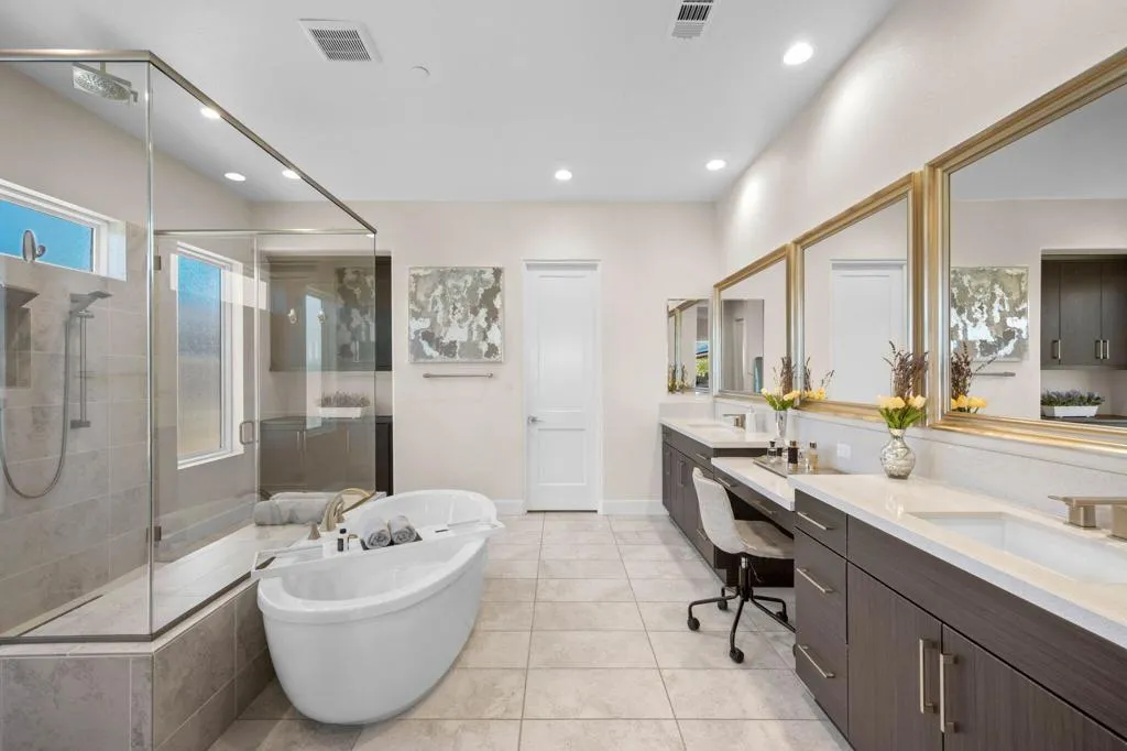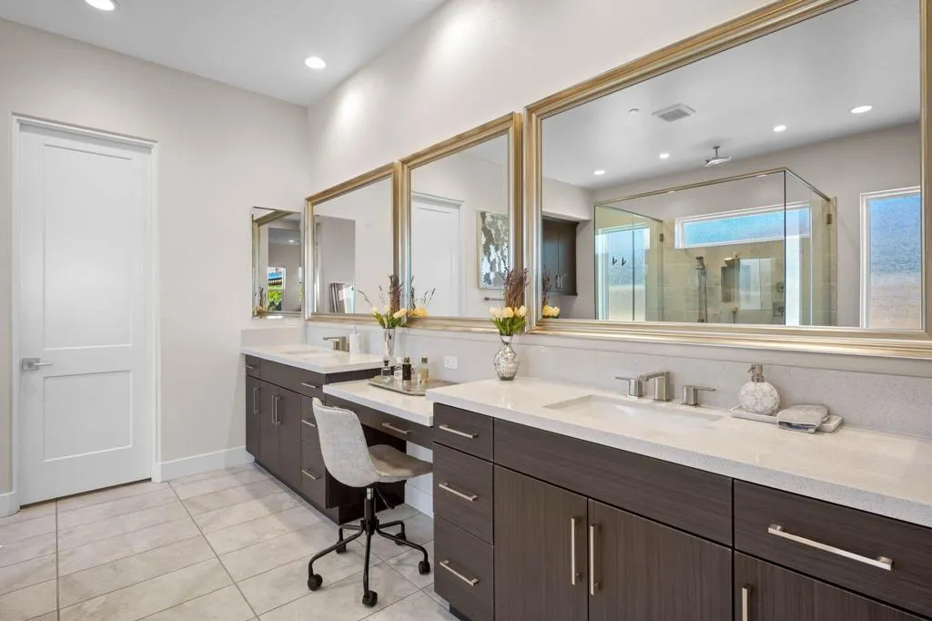**Welcome to The Province**, an exclusive gated enclave in the heart of Indian Wells, where modern desert living is elevated to its finest expression. This stunning **3-bedroom, 4-bathroom residence** showcases sophisticated design, premium finishes, and thoughtful craftsmanship throughout.Step inside to a **spacious open-concept floor plan** designed for effortless entertaining. The expansive great room flows seamlessly into the dining and living areas, enhanced by a stylish **wet bar with direct outdoor access**, creating a true indoor-outdoor lifestyle.The **gourmet kitchen** is a showpiece, featuring quartz countertops with designer tile backsplash, an oversized quartz island accented by custom pendant lighting, abundant cabinetry, and premium stainless steel appliances--including a **Wolf six-burner range, Sub-Zero refrigerator, Wine Cooler, Cove dishwashers**, walk-in pantry, and under-cabinet lighting--perfect for both the culinary enthusiast and the entertainer.The **primary suite** offers a private sanctuary with direct outdoor access, generous custom cabinetry, and a spa-inspired bath complete with a quartz double vanity, smart bidet, expansive tiled shower, and a luxurious soaking tub designed for ultimate relaxation. A custom-designed walk-in closet adds both elegance and functionality.An additional **flex room ** provides versatility for a home office, media room, or den. Two beautifully appointed guest bedrooms each feature their own full bathrooms, offering comfort and privacy for family and guests alike.Professionally decorated with a modern, refined aesthetic, the home reflects exceptional pride of ownership throughout.Outside, your **private south-facing desert oasis** awaits. Enjoy year-round sunshine with a sparkling **saltwater pool and spa**, cascading waterfall, fire pit, and **breathtaking mountain views**. A custom built-in BBQ creates the perfect setting for alfresco dining and entertaining under the stars.Additional upgrades include **owned solar panels, custom tile flooring, tankless water heater, dual-zone HVAC**, and an oversized garage with extensive storage.This exceptional residence offers the very best of **luxury desert living** with incredible south views of the mountains. As an Indian Wells resident, enjoy exclusive discounts on world-class golf and dining.A must-see opportunity in one of the desert's most coveted communities.
